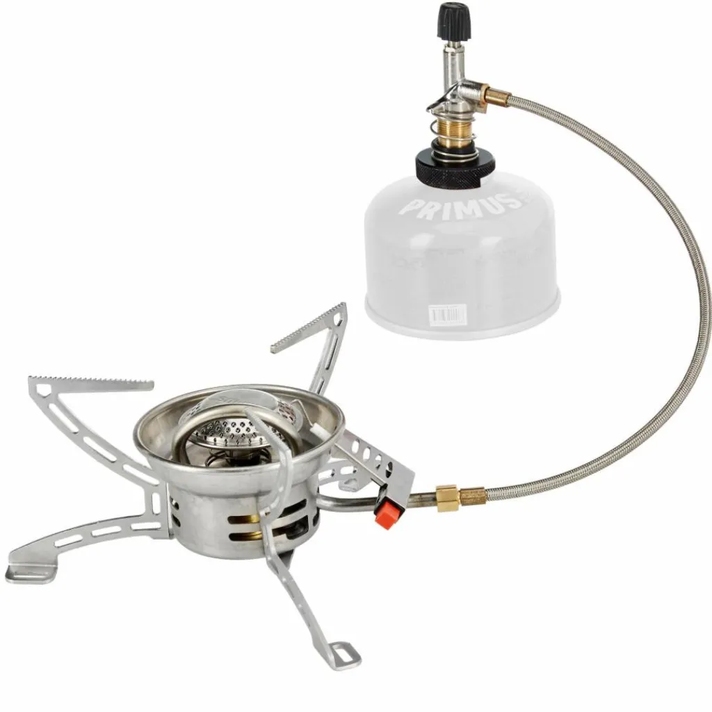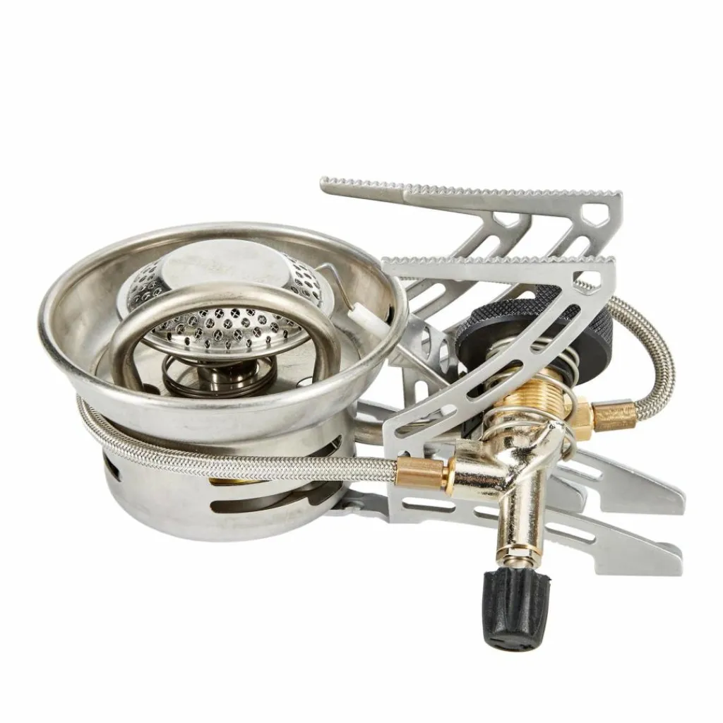 Praktisch hierbei ist der lange Brennerschlauch, der die Gaskartusche abseits des Kochers positionieren lässt. Das Ventil zum präzisen Regulieren der Flamme sitzt direkt am Anschlussstück und ist dadurch jederzeit erreichbar, ohne sich die Finger zu verbrennnen.