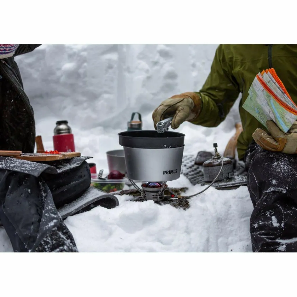 Praktisch hierbei ist der lange Brennerschlauch, der die Gaskartusche abseits des Kochers positionieren lässt. Das Ventil zum präzisen Regulieren der Flamme sitzt direkt am Anschlussstück und ist dadurch jederzeit erreichbar, ohne sich die Finger zu verbrennnen.