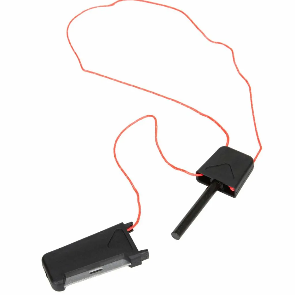 Der Ignition Steel kann an der langen Kordel um den Hals getragen werden und ist dadurch schnell zur Hand. Mit dem Schaber kannst du Material abtragen und Funken erzeugen, die eine Temperatur von 3000 °C haben. Sie entfachen zuverlässig trockenes Material und Kocher.