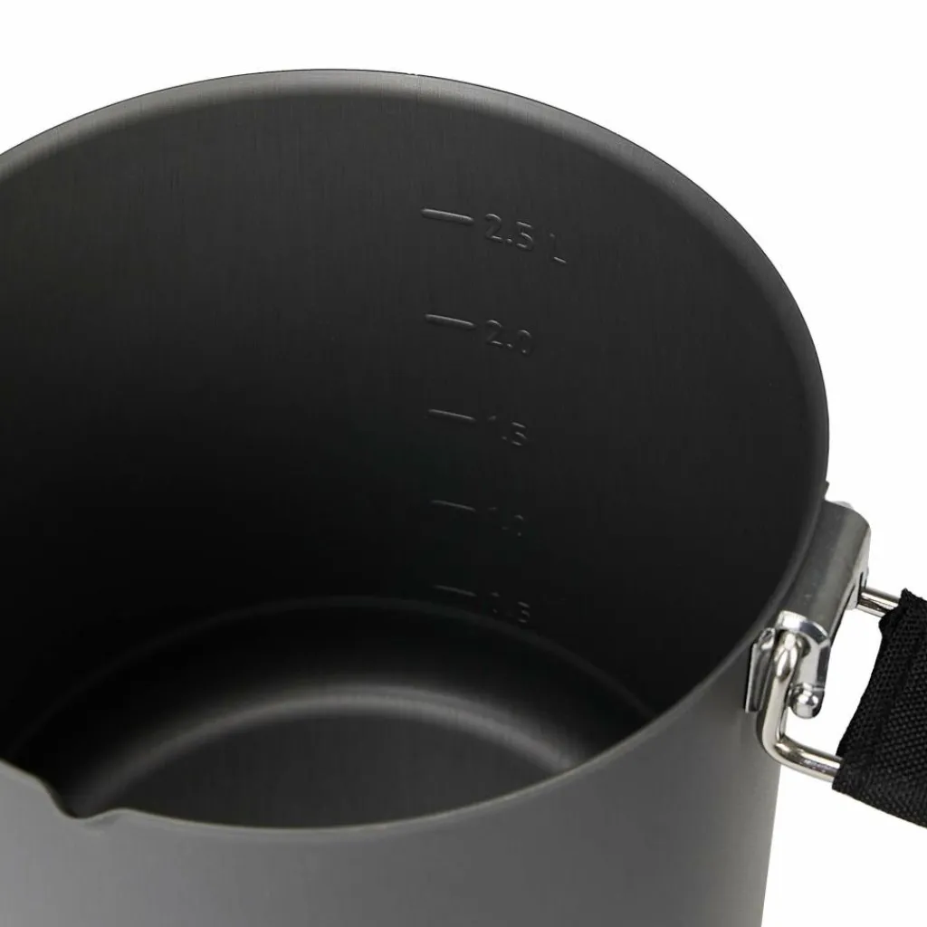 Dieser Topf aus hartanodisiertem Aluminium ist mit einem Wärmetauscher ausgestattet und fasst 2500 ml. Konzipiert für das Ulti Stove System von Primus, passt er aber auch auf fast alle anderen Kocher.