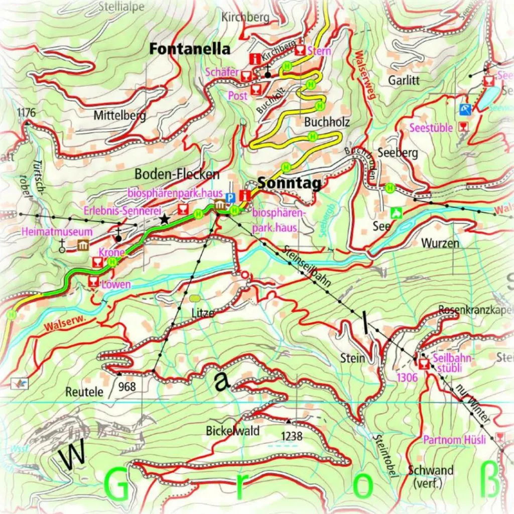 Der Bregenzerwald, die größte Region des Bundeslandes Vorarlberg, erstreckt sich, durchzogen von der Ache, beinahe vom Bodensee bis an die Grenze zu Tirol. Er begeistert Wanderer und Mountainbike gleichermaßen mit einer faszinierenden, landschaftlichen Vielfalt: Talengen und flache Senken wechseln sich ab mit den Hügeln des Voralpenlandes und hochalpinen Gipfeln wie Kanisfluh, Diedamskopf oder Widderstein. Wildromantisch, geprägt von steilen, grünen Hängen, an denen Braunvieh grast, Berggipfeln, steilen Schluchten, tosenden Bächen, Wasserfällen und dem klaren Seewaldsee zeigt sich das Große Walsertal. Neben der einmaligen Landschaft warten zahlreiche Museen, die ihre Besucher in die Vergangenheit entführen.