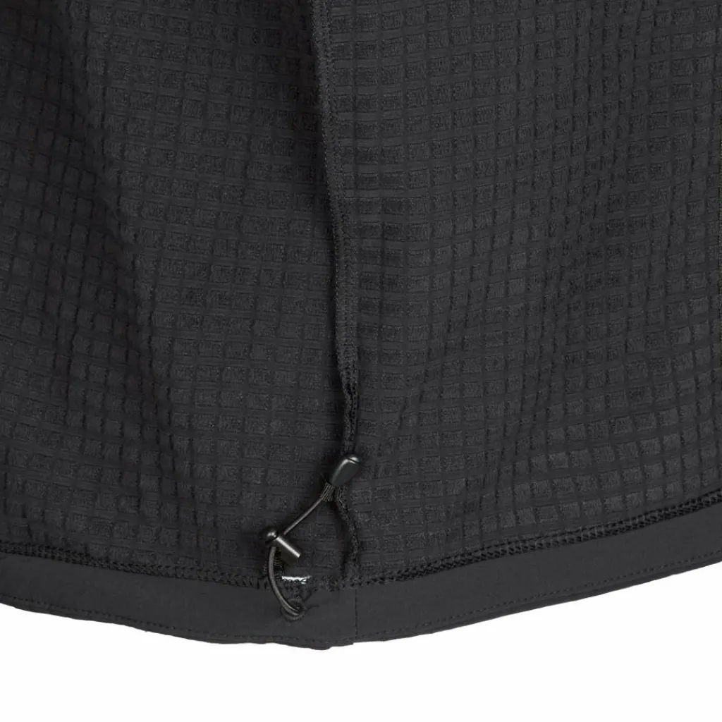 Das strapazierfähige Stretchfleece (Thermic Pro) sorgt für angenehme Wärme und dank seiner Waffelstruktur auf der Innenseite für ein sehr gutes Feuchtigkeitsmanagement. Die Einsätze aus atmungsaktivem, windabweisendem Softshell-Material bieten zusätzlichen Schutz und Komfort, wenn der Wind am Berg auffrischt. Das Hybrid-Design ist auf alpine Bewegungsabläufe abgestimmt: weniger Volumen unter Helm und Rucksack, dafür mehr Atmungsaktivität unter den Armen. So bleibt deine Körpertemperatur auch bei fordernden Aufstiegen und langen Kletterpassagen optimal reguliert.