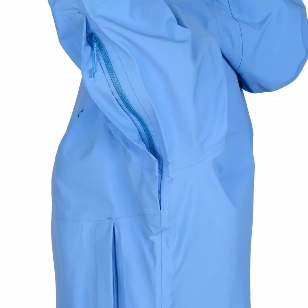 Die helmtaugliche Kapuze bietet zusätzlichen Schutz bei Sturm und Regen. Sie lässt sich im Volumen regulieren sowie einrollen, wenn sie nicht benötigt wird. Dank der RV-Unterarmbelüftung kannst du ganz nach Bedarf für wohltuende Abkühlung sorgen, wenn du beim Klettern ins Schwitzen gerätst. Durch die vorgeformten Ärmel genießt du volle Bewegungsfreiheit.