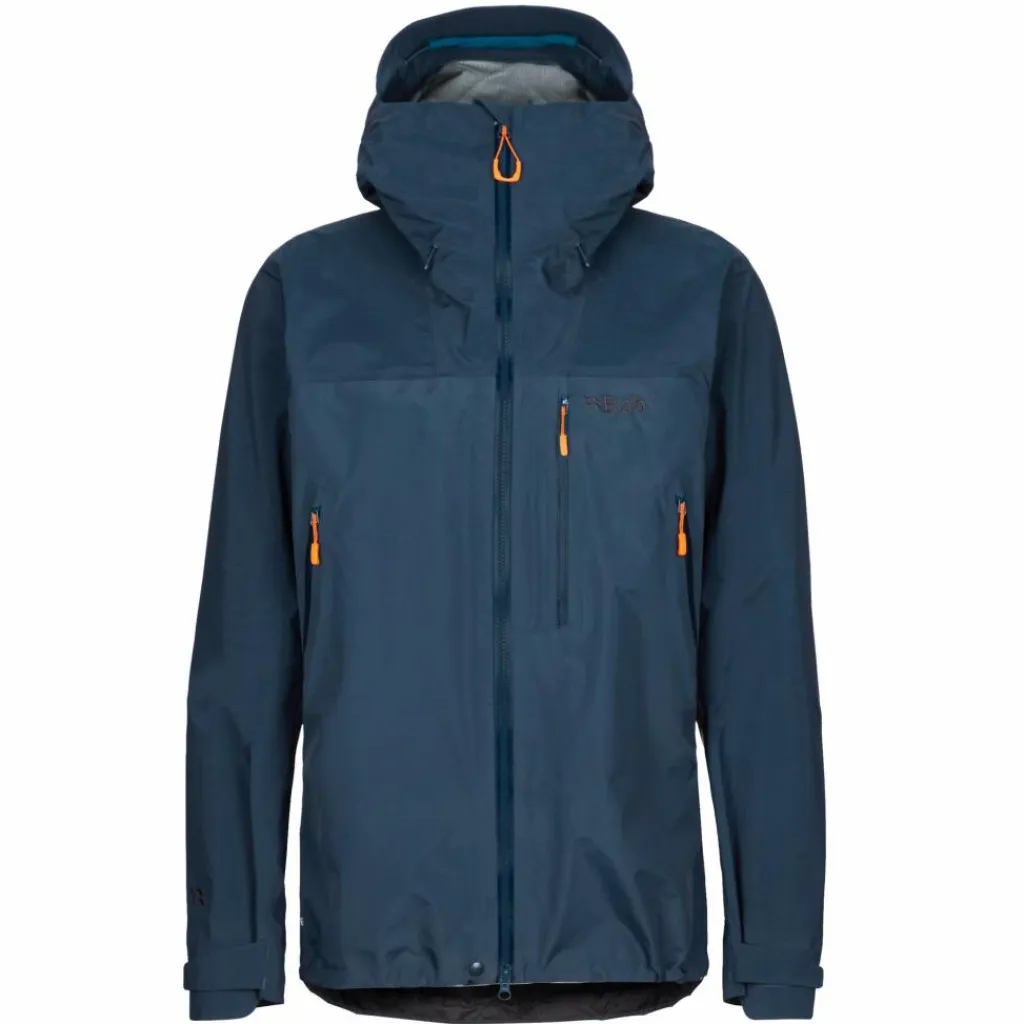Geht es in die Vollen, kannst du dank der RV-Unterarmbelüftungen für wohltuende Abkühlung sorgen. Dagegen bietet dir die im Volumen vorne und hinten regulierbare Kapuze optimalen Schutz bei stürmischem Regenwetter. Obendrein kann sie bei Klettereinheiten eingerollt und per Klettverschluss fixiert werden. Die beiden RV-Taschen sind bewusst höher angebracht, sodass du bequem einen Becken- oder Klettergurt tragen kannst. Und damit auch an den Ärmel und am Saum Nässe und Wind abgehalten werden, lassen sich diese in der Weite regulieren.