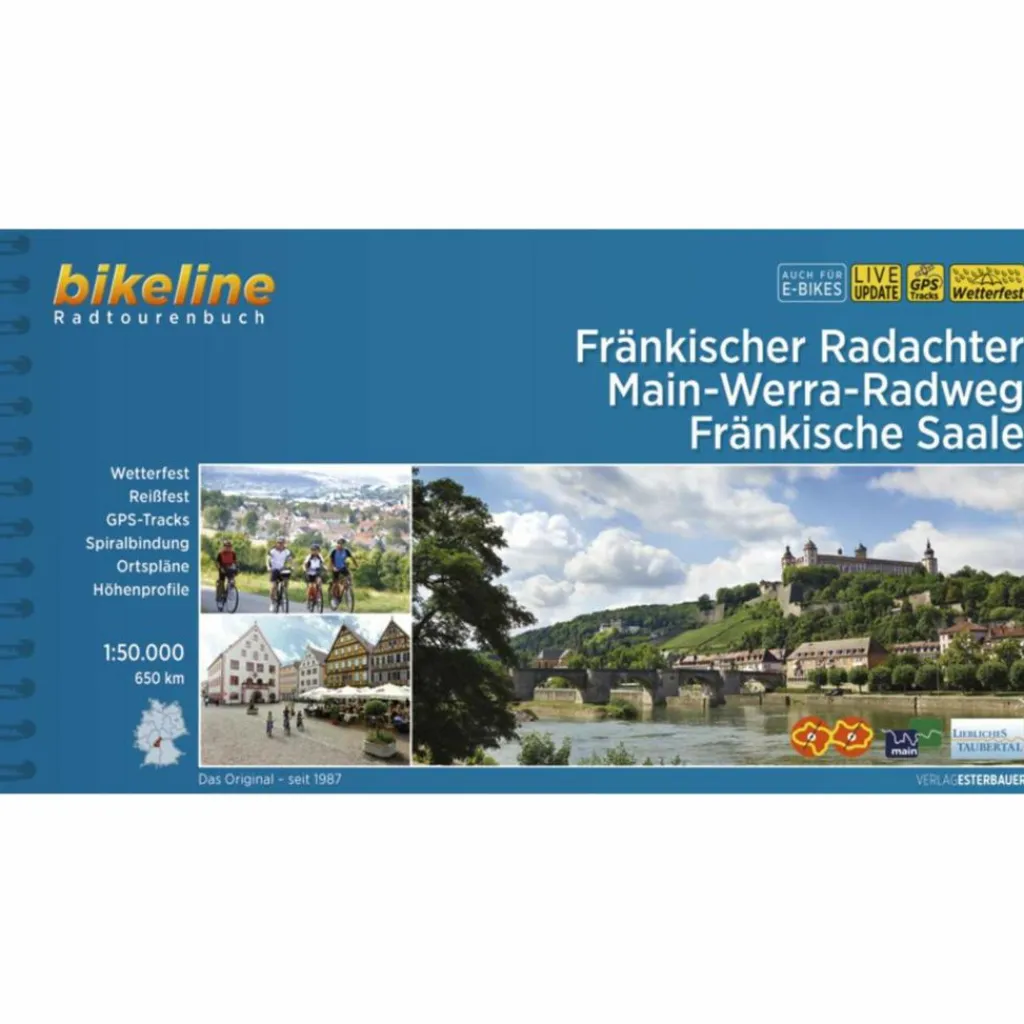 Im diesem neu konzipierten Radtourenbuch sind für begeisterte Radfahrer drei beliebte und wunderschöne Radwege in nur einem Titel zusammengefasst. Beim Fränkischen Radachter entlang der Tauber und dem Main gilt es die historischen Städte Ochsenfurt, Würzburg und Wertheim zu entdecken. Dem Radachter folgend geht es weiter durch bunte Wiesen, Felder und sonnige Rebhänge – durch das „liebliche Taubertal“. Der Westring hat mit einigen liebenswerten Orten, wie Buchen, Amorbach und Miltenberg, ebenfalls einiges zu bieten. Entlang des Main-Werra-Radweges von Würzburg nach Meiningen heißt es das wellige Maindreieck mit imposanten Landschaften und staunenswerten Tälern zu erkunden.