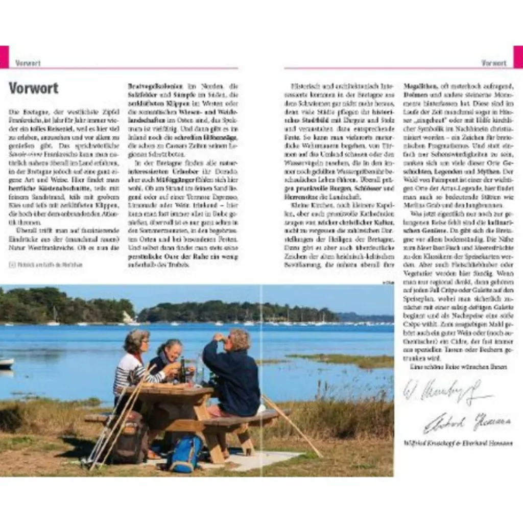Begleiten Sie die Autoren nach St-Malo mit seinen mächtigen Festungsanlagen und auf den höchsten Leuchtturm Europas auf der Île Vierge. Erkunden Sie den Fôret de Paimpont, in dem die Sage von Artus, Merlin und Morgane lebt, und den berühmten Mont Saint-Michel mit seinem jahrhundertealten Kloster. Bewundern Sie die riesigen Muscheln im Austernmuseum bei Cancale und genießen Sie nach einer Wanderung den Ausblick vom Ménez Hom. Besuchen Sie Rennes, Hauptstadt und kulturelles Zentrum der Bretagne, staunen Sie über die Menhire bei Carnac und entspannen Sie bei einem Glas Chouchen, dem typischen Honig-Apfelwein, und einer Crêpe.