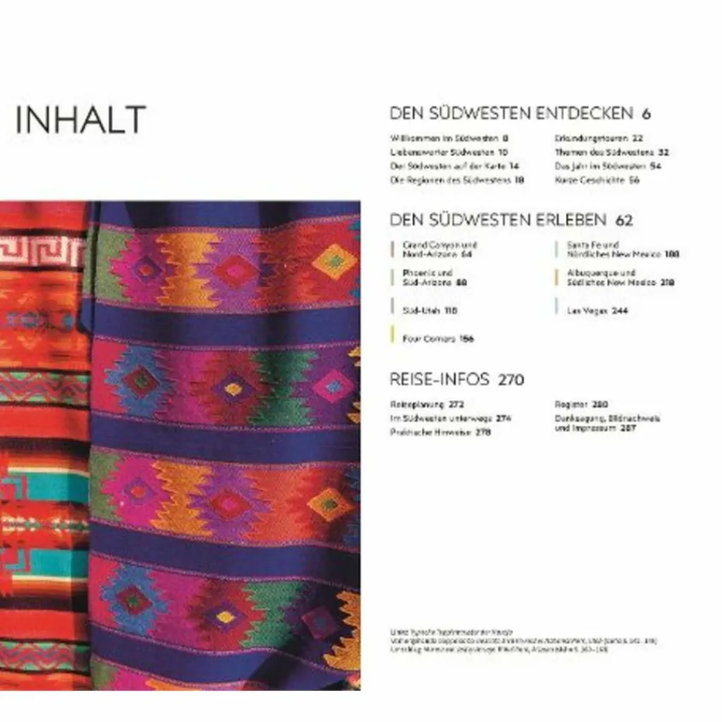 – Ausgewählte Top-Themen: Auf den bildgewaltigen Themenseiten des USA Südwesten-Reiseführers stehen charakteristische Besonderheiten im Fokus. Entdecken Sie die Wunder der Natur, wie den Horseshoe Canyon, Unterhaltung der Extraklasse mit spektakulären Shows und Sportveranstaltungen oder erleben Sie den Wilden Westen mit rasanten Rodeos und Cowboy-Legenden