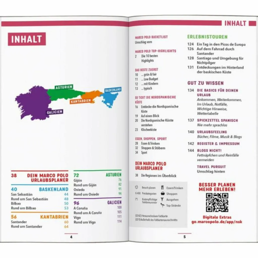An der Küste sorgen Meeresrauschen und Möwengeschrei für Urlaubsfeeling, im Landesinneren versetzen dich imposante Bergmassive und bewaldete Hügel in die Alpen. Mit den Tipps in deinem Marco Polo Reiseführer entdeckst du die nordspanische Küste in all ihren Facetten!