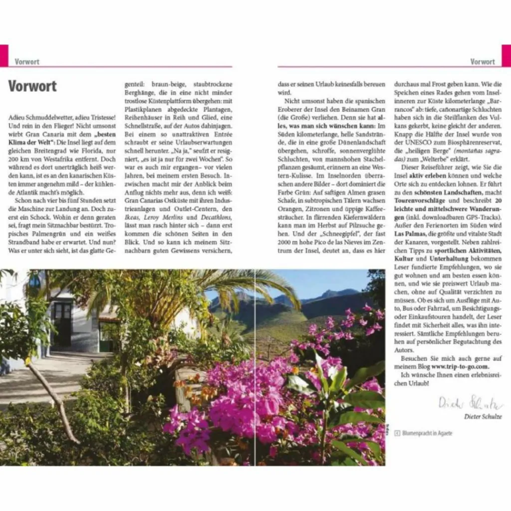 Dieser umfangreiche Reiseführer führt zu allen interessanten Orten der Insel. Er nimmt die Leser mit auf einen Kultur-Trip durch die Altstadt von Las Palmas, zu den Dünen von Maspalomas, die jedes Jahr um mehrere Meter wandern, und in das Höhlenrestaurant in Artenara, dem höchstgelegenen Dorf der Insel auf 1.270 Metern. Ganze 12 Wandertouren führen auf den Wolkenfels und um ihn herum, durch Mandelbaumhaine nach Tejeda, über den spektakulären Königsweg von Cruz Grande nach Ayacata und die Schluchten des Südens bis in den Krater des Bandama. Wen es unter Leute zieht, der stürzt sich in den lebhaften Trubel der Hauptstadt oder der Strände an der südlichen Costa Canaria.