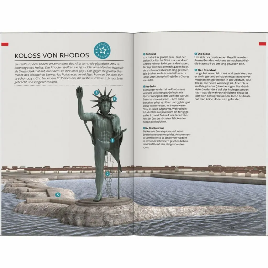 Antike im Mondschein – nicht unbedingt augenscheinliche, vielmehr magische Momente stehen beim neuen Baedeker im Fokus: Abends sind die Urlaubermassen aus den Gassen von Líndos verschwunden, Restaurants öffnen ihre Pforten, servieren feine Küche auf Dachterrassen mit Akropolis-Blick. Der Fels und die Mauern der Johanniterfestung sind angestrahlt, über sie hinweg schauen die Kapitelle der Säulen vom Athena-Tempel. Der Mond taucht das Meer in ein Zauberlicht – und weit und breit ist kein Auto zu hören.