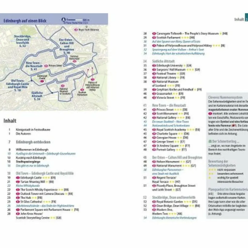 Edinburgh zum Durchatmen: Princes Street Gardens, Union Canal und Holyrood Park – Ausgewählte Unterkünfte von preiswert bis ausgefallen – Alle praktischen Infos zu Anreise, Preisen, Stadtverkehr, Touren, Events, Hilfe im Notfall … – Hintergrundartikel mit Tiefgang: Geschichte, Mentalität der Bewohner, Leben in der Stadt … – Kleine Sprachhilfe Englisch mit den wichtigsten Vokabeln für den Reisealltag – Faltplan zum Herausnehmen Dazu: kostenlose Web-App für Smartphone, Tablet und PC mit Stadtplan- und Satellitenansichten passend zum Text, Routenführung zu allen beschriebenen Sehenswürdigkeiten, Verlauf der Stadtspaziergänge, seitenbezogenen Updates nach Redaktionsschluss sowie einem Mini-Audiotrainer Englisch.