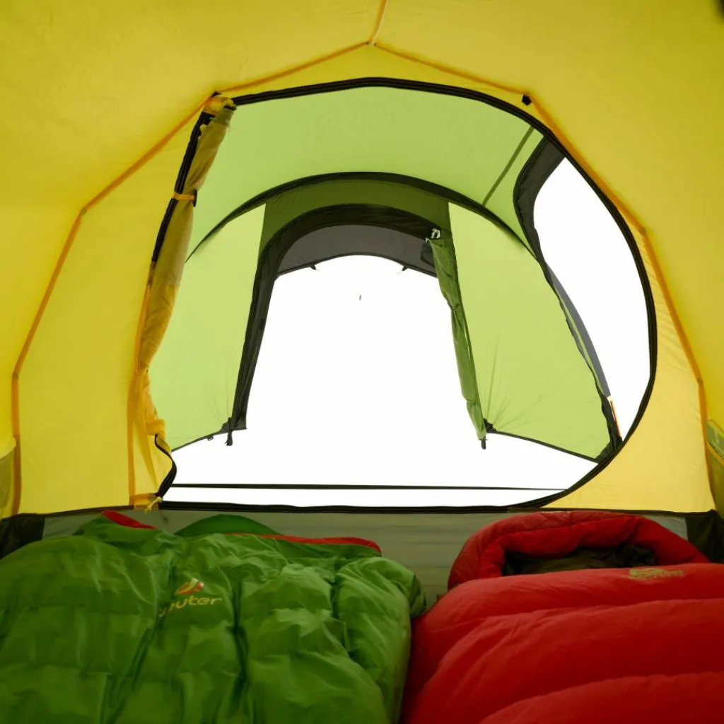 Den Innenraum nutzt du dank steiler Seitenwände perfekt aus und hast sowohl im Schlafraum als auch in der Apsis ein hervorragendes Platzangebot. Dort verstaust du auch sperrige Gegenstände wie Trekkingrucksäcke, Schuhe oder große Packsäcke problemlos.