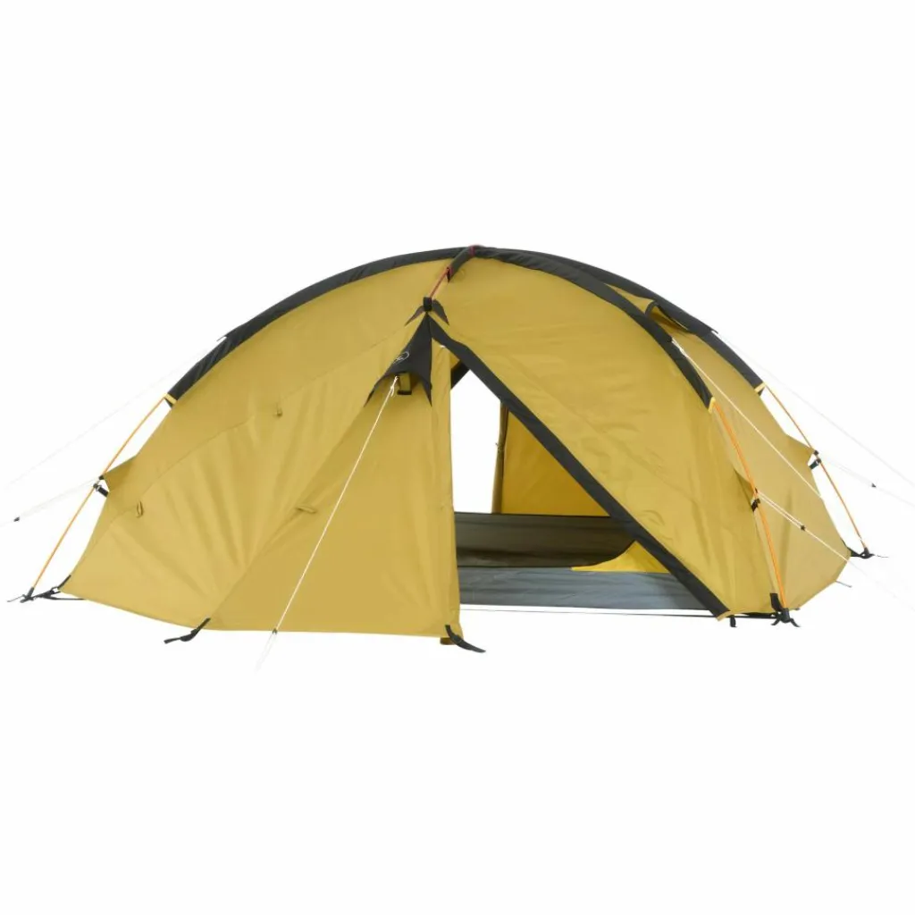 Die Kuppelkonstruktion mit sich kreuzenden Gestängebögen zeigt sich selbst von starkem Wind unbeeindruckt. Dazu kommen strapazierfähige Materialien und ein Überzelt bzw. Zeltboden mit einer wasserdichten PU-Beschichtung. Die Zeltwände reichen bis auf den Boden hinab. So bist du stets gut vor den Elementen geschützt.