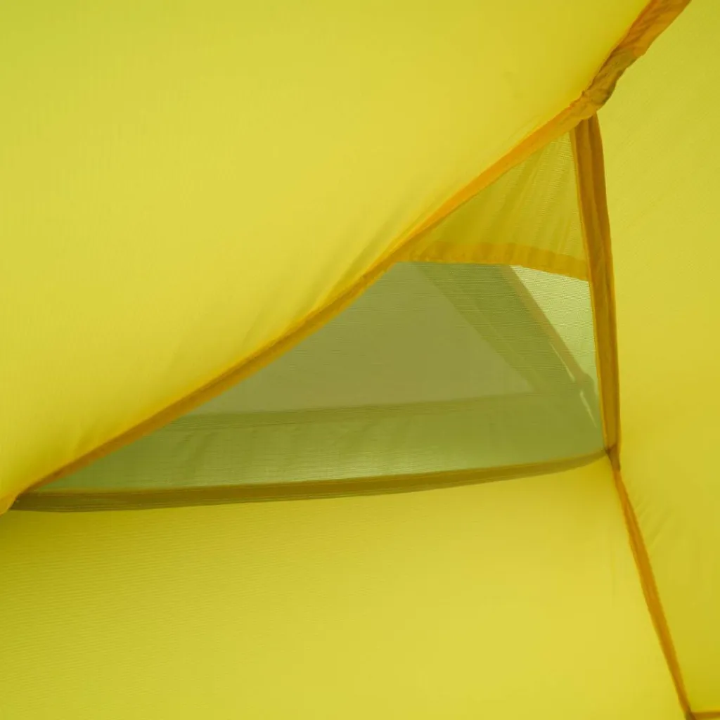 Für ausreichende Belüftung sorgen zwei große Hochlüfter an den Querseiten sowie zwei kleinere Lüfter an den Apsiden. Die Tür des Innenzelts besteht aus einem großflächigen Mesh-Material, das bei Bedarf teilweise oder vollständig abgedeckt werden kann.