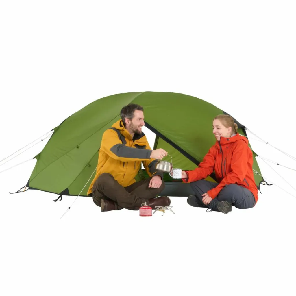 Dieses robuste Kuppelzelt ist eine gute Wahl für den vielfältigen Outdooreinsatz. Bei Radreisen, Paddeltouren und Wanderungen lässt es sich dank der Konstruktion mit vier Heringen aufstellen.