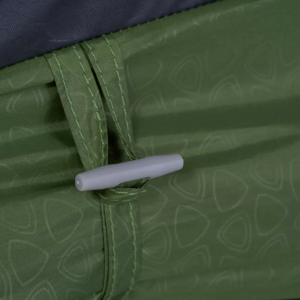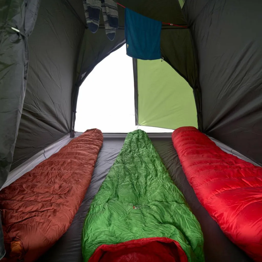 Im Innenzelt bieten mehrere Seitentaschen zusätzliche Verstaumöglichkeiten. Am Zelthimmel ist eine Wäscheleine gespannt, an der du Kleidung zum Lüften aufhängen kannst. Mittig im Deckenbereich befindet sich eine Schlaufe, an der du eine Zeltlaterne befestigen kannst, um das Lago Flex nachts gut auszuleuchten. Für einen erholsameren Schlaf im Sommer ist das Innenzelt abgedunkelt.