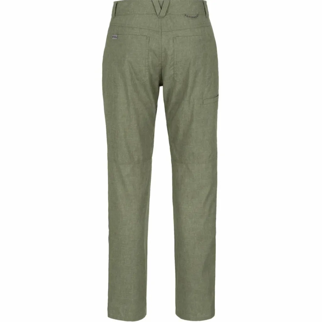 Die vielseitige Hose besteht aus einem Materialmix, der dich auf diversen Einsätzen mit nötiger Strapazierfähigkeit sowie verhältnismäßig kurzer Trocknungszeit begleitet. Mehr als 50 % Hanf macht das Gewebe robuster und liegt leicht kühl auf der Haut, während das recycelte Polyester mit schnellem Feuchtigkeitstransport aufwartet. Durch etwas Elasthan wird das Gewebe dezent dehnbar und damit flexibler.