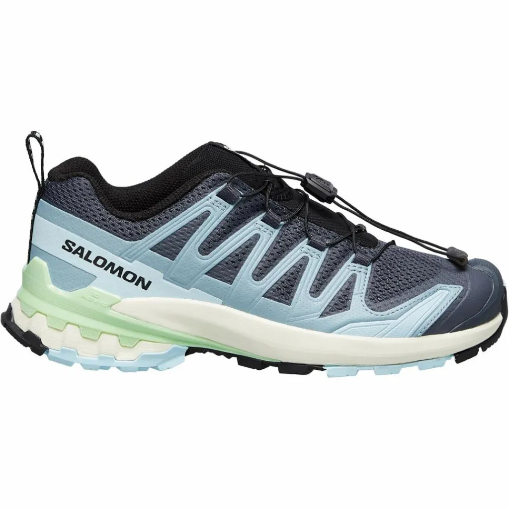 Das ist der XA Pro 3D V9 von Salomon. Aus schnell trocknendem, luftigem Mesh und stabilisierendem TPU-Verstärkungen. Innen leicht gepolstert und mit synthetischem Futter ausgestattet. Für angenehmes Auftreten und gut klimatisierte Füße. Die verdeckt eingearbeitete Zunge verhindert das Eindringen störender Kleinstteilchen.
