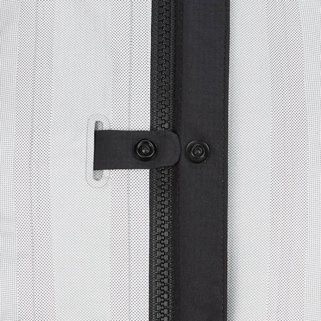 - Hoher, schützender Kragen; genug Material für Kopfdrehungen bei aufgesetzter Kapuze