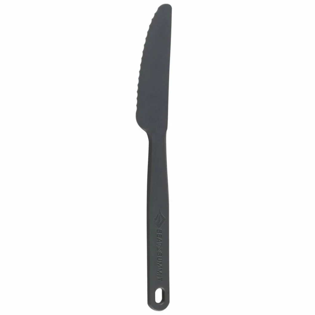 Es muss nicht immer ein Set sein. Dieses Kunststoffmesser liegt gut in der Hand und eignet sich als Ersatz für verloren gegangene Ausrüstung oder zum Zusammenstellen individueller Camping-Bestecksets.