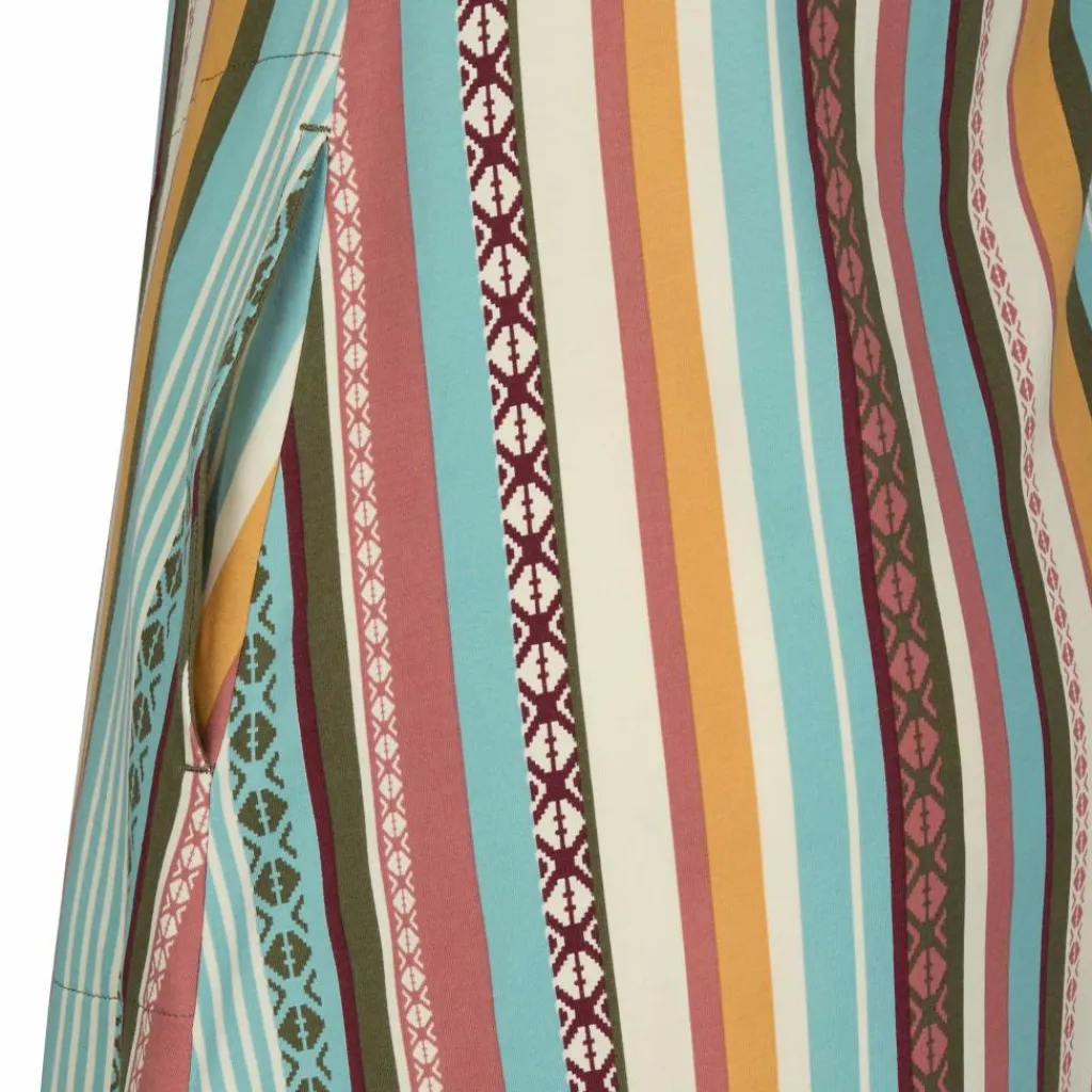 Dank seiner Materialmischung aus Modal und Bio-Baumwolle ist das Kleid schön weich und geschmeidig und liegt sehr angenehm auf der Haut. Der Elasthan-Anteil macht es noch dazu so dehnbar, dass du volle Bewegungsfreiheit hast. Durch seinen Empire-Schnitt, der nach unten hin weiter wird, lässt das Kleid viel Luft an die Beine. So sorgt es auch bei heißem Wetter für hohen Tragekomfort. In den beiden dezent eingearbeiteten Seitentaschen kannst du dein Handy oder Geld für die Eisdiele deponieren. Der Allover-Print verleiht dem Kleid eine schöne, sommerliche Optik.