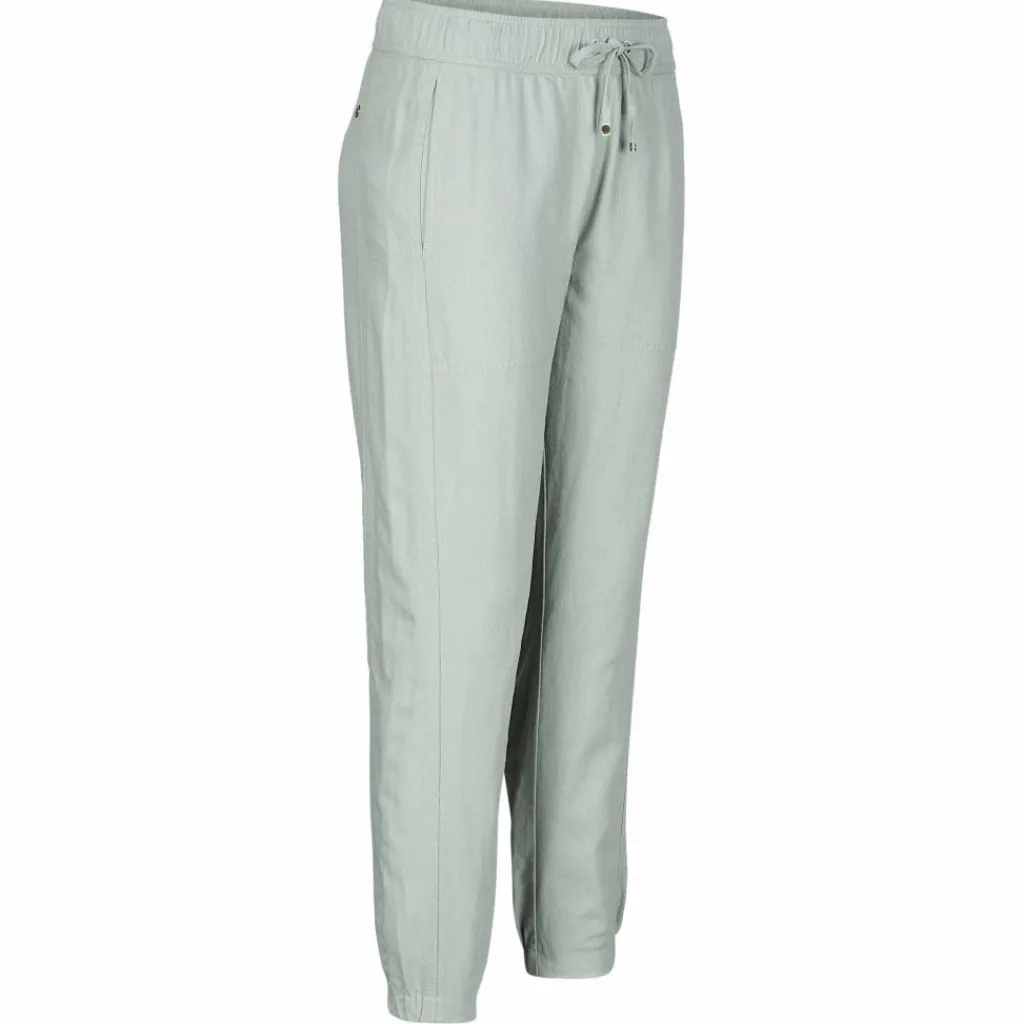 Die Pelmo Pant liegt wunderbar weich auf der Haut und sitzt dank ihres lässigen Jogger-Styles und ihres elastischen Hosenbunds sehr bequem – ob auf langen Reisen oder im sommerlichen Alltag.