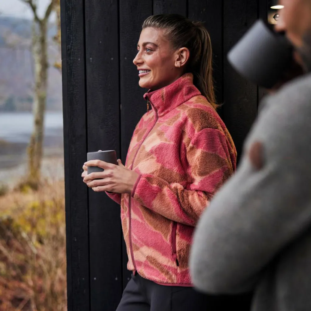 Mit ihrem warmen, recycelten Fleece-Material und ihrem hübschen Muster ist die Uddesya Eco Jacket ein praktisch-schöner Midlayer, der an und milderen, trockenen Tagen auch als äußere Lage überzeugt.