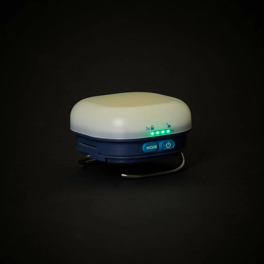 Hergestellt aus recyceltem Kunststoff und ausgestattet mit einem Lampenschirm, der eine breite Ausleuchtung ermöglicht, begleitet dich die Glow auf deinen Trekkingabenteuern. Wähle zwischen kaltweißem Licht zur Orientierung im Camp oder warmweißem Licht, um den Abend stimmungsvoll zu verbringen. Mit drei Helligkeitseinstellungen von 10 bis 250 Lumen kannst du lesen oder dein Zelt vollständig ausleuchten.