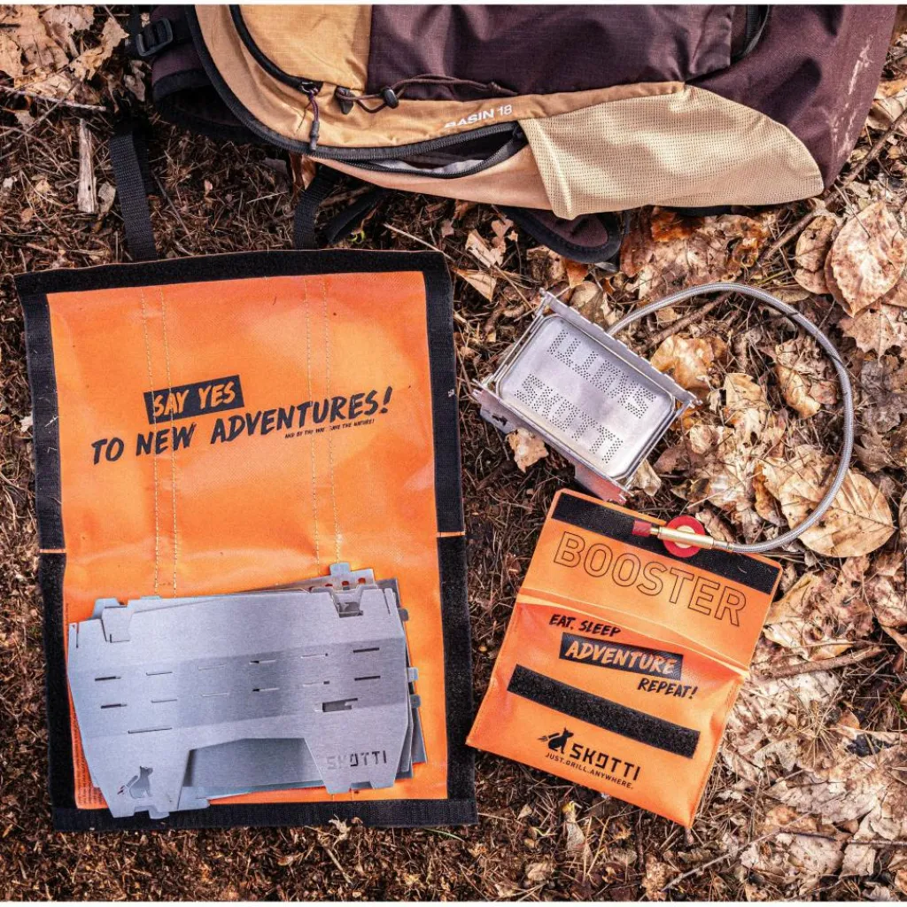Was wäre Skotti ohne eine Grillfunktion? In Kombination mit dem separat erhältlichen Skotti Mini (siehe unter „Passend dazu“) verwandelst du den Booster in einen vollwertigen Grill. Das bereichert die Campingküche um Grillfleisch, Grillgemüse, Scampispieße und vielem mehr!