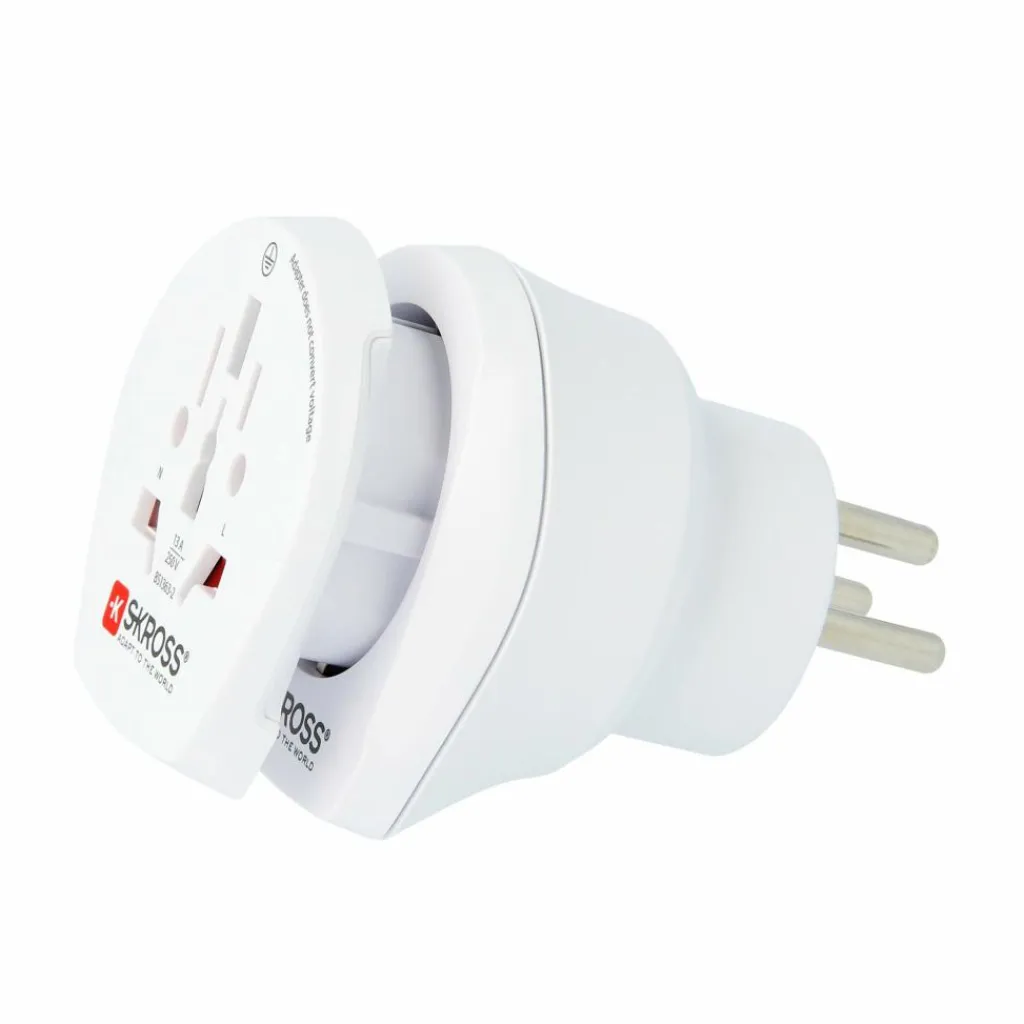 Dieser Reisestecker bietet einen Ausgang für Stecker aus Europa (Schuko) und Israel und ist auch für energieintensive Geräte wie Notebooks und Föns geeignet.
