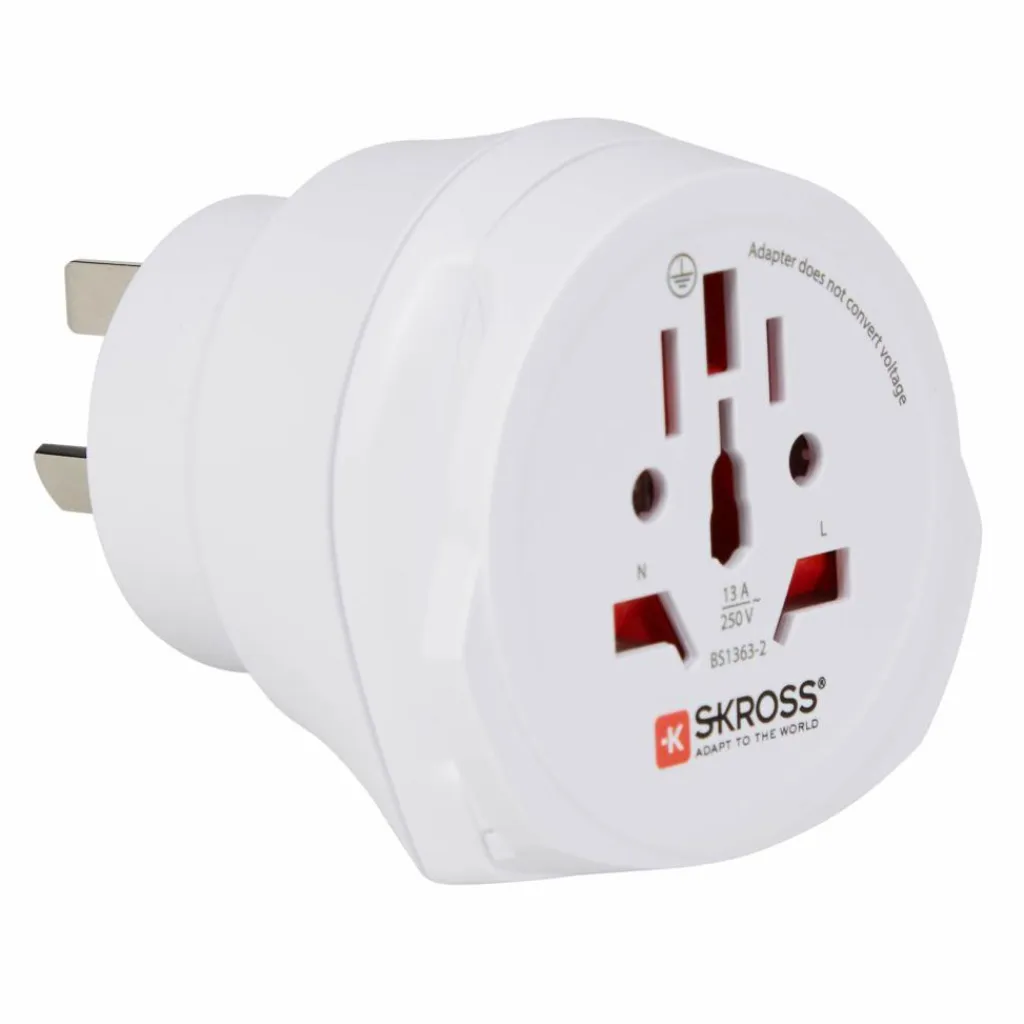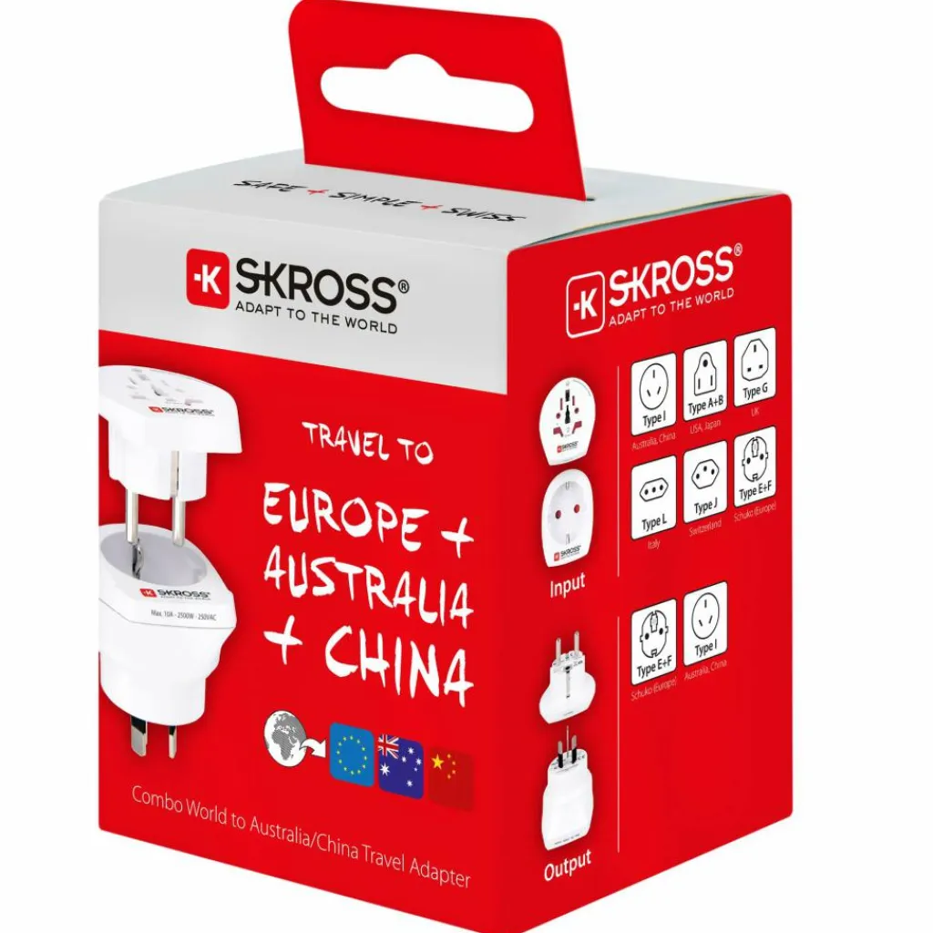 Der Combo World to EU/AUS besteht aus zwei Adaptern, die den australischen und Schuko-Standard besitzen. Dadurch ist er in 119 Destinationen einsetzbar – auch für leistungsstarke Geräte!