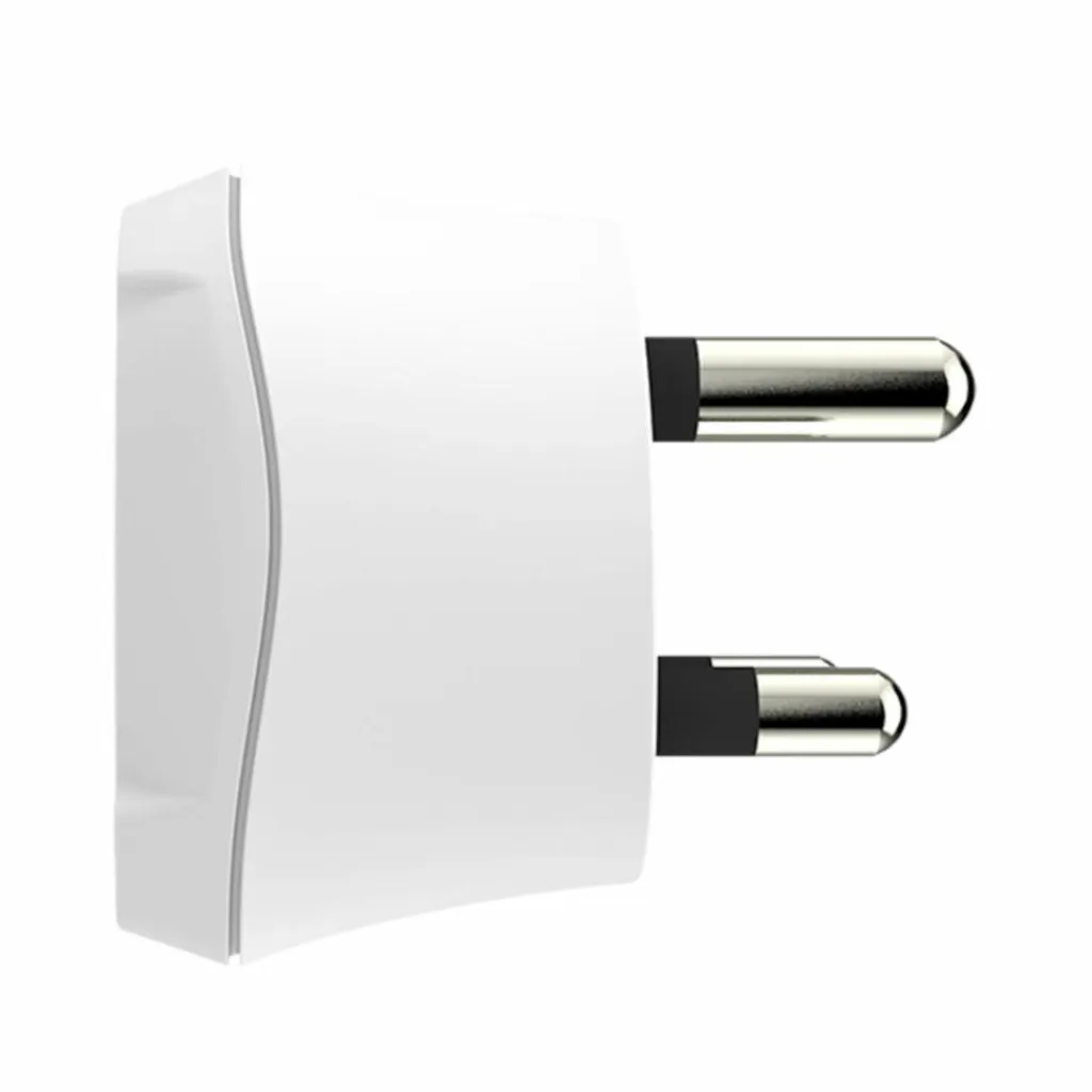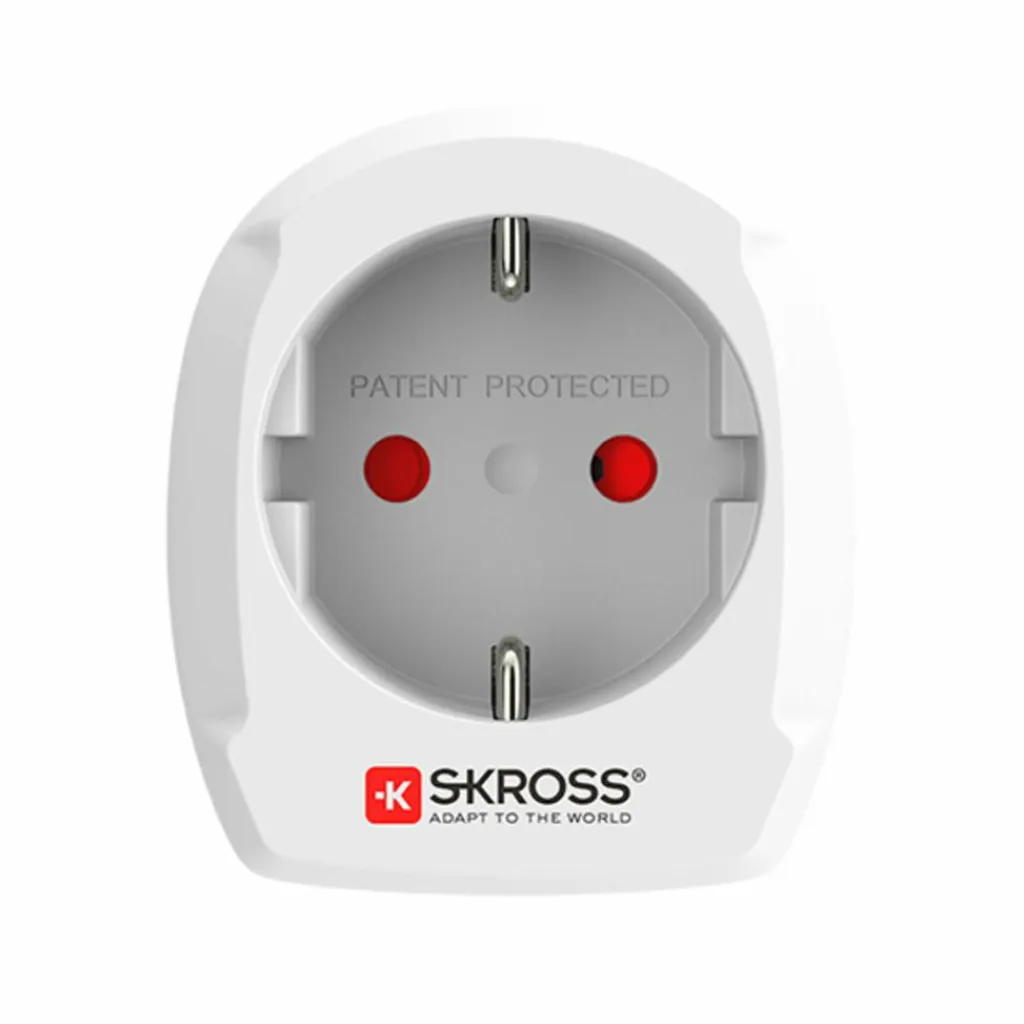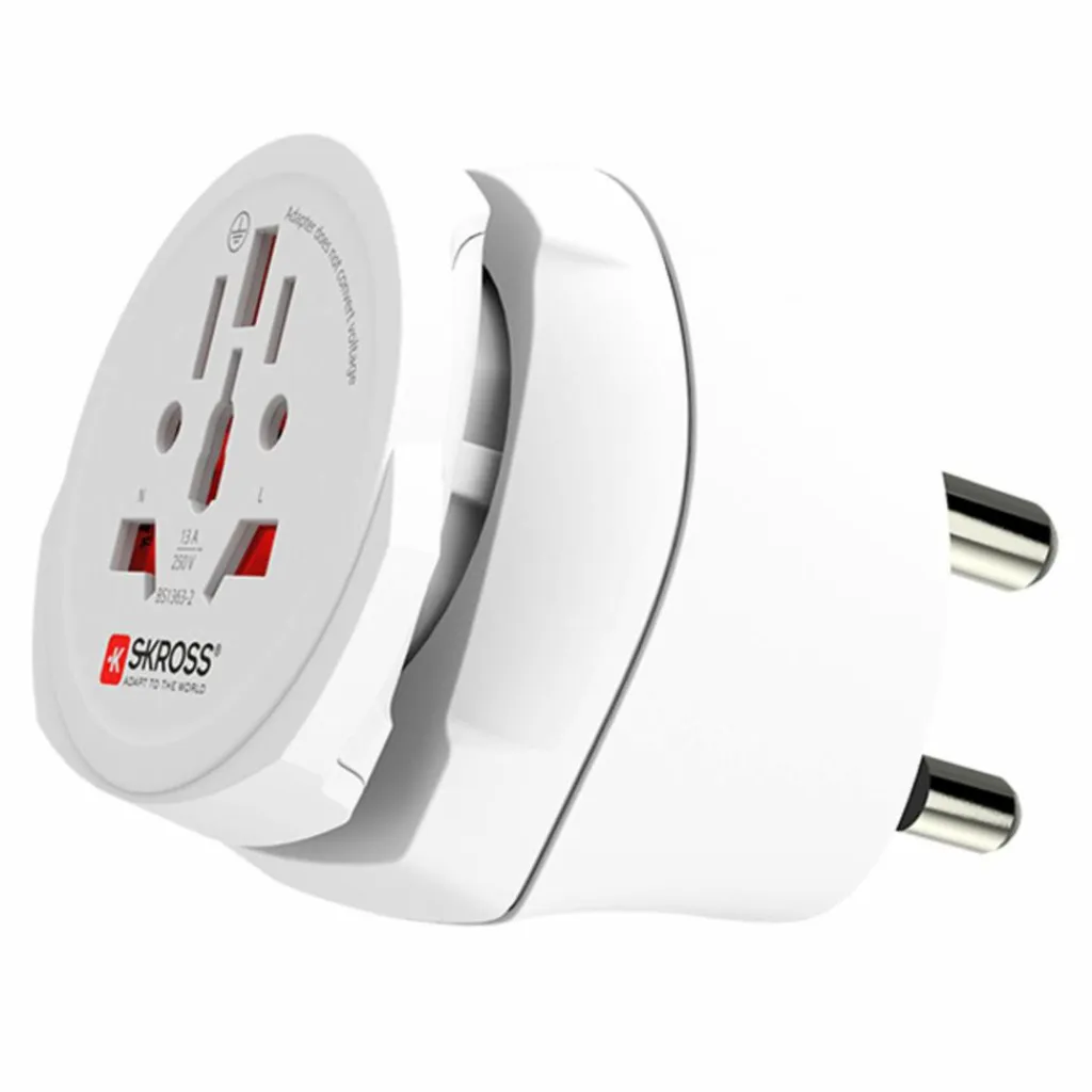 Reisestecker für Reisen nach Südafrika und alle Länder mit Schuko-Standard. Der Einsatz erlaubt das Anschließen unterschiedlicher Steckertypen weltweit.