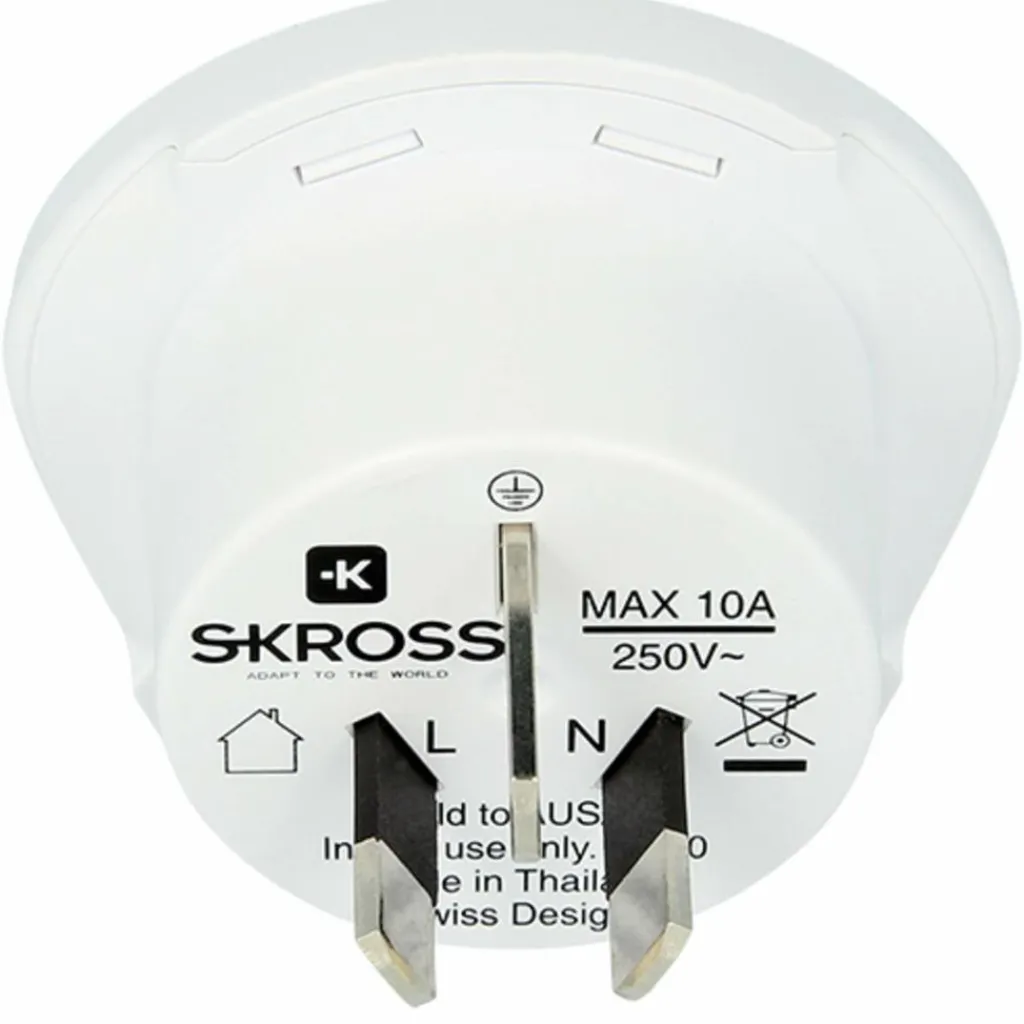 Reisestecker für Reisen nach Australien, China und alle Länder mit australischem-Standard. Der Einsatz erlaubt das Anschließen unterschiedlicher Steckertypen weltweit.