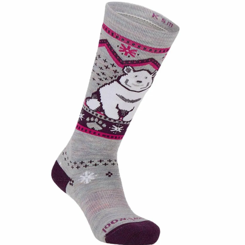 Die kuscheligen Wintersport Full Cushion Polar Bear Socken mit Merinowolle mit spielerischem Eisbärmotiv sind durchgehend gepolstert und haben flachgestrickte Zehennähte für zusätzlichen Komfort. Die Merinowolle sorgt für gutes Klima und ausgeglichene Temperaturen.