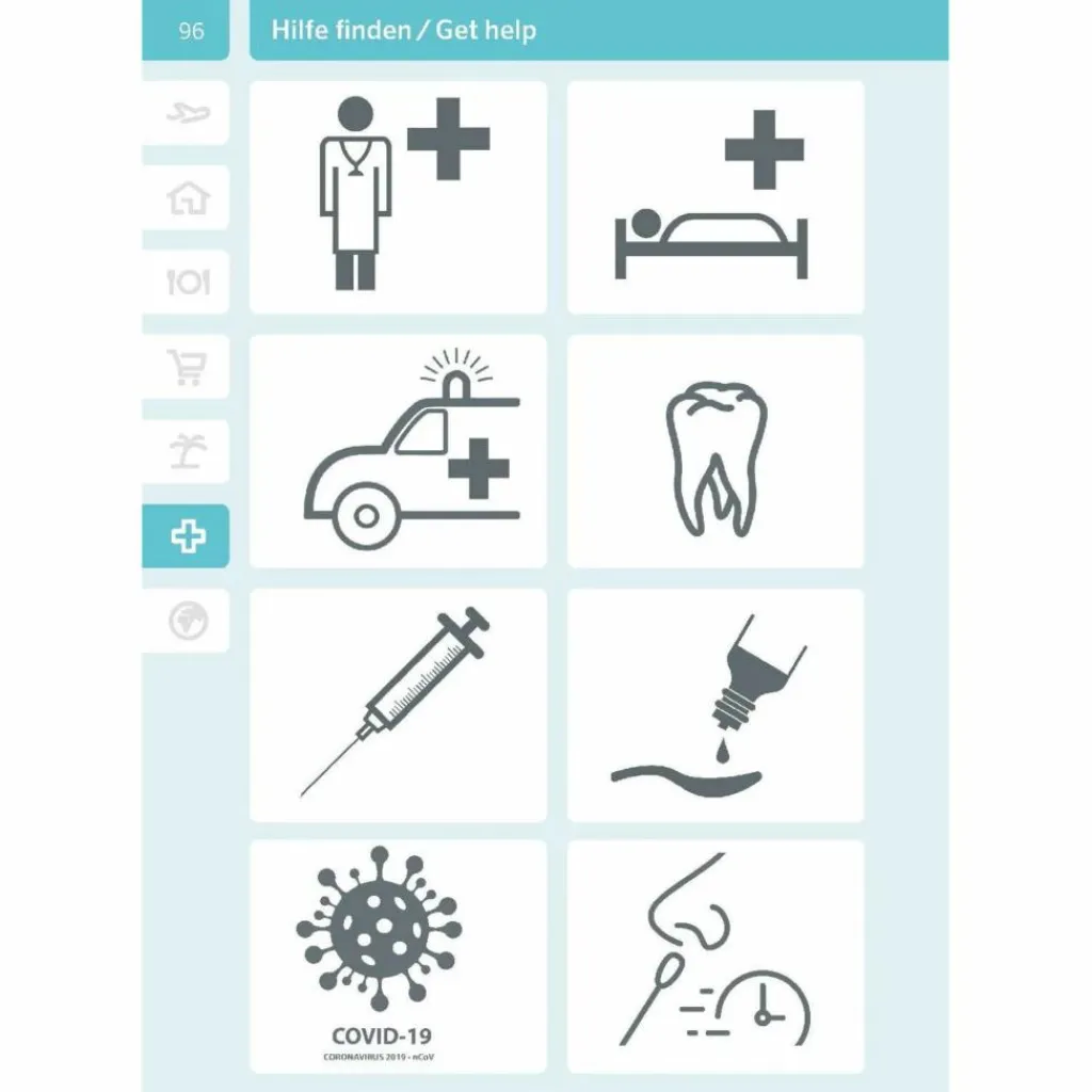 Mit dem Zeigefinger um die Welt. Die Sprache, die alle verstehen. – Einfach auf alles zeigen: Die 650 wichtigsten Motive für unterwegs und Alltag. – Sie suchen eine Unterkunft oder ein vegetarisches Essen? Mit den aktuellen Bildern und Icons kommen Sie überall zurecht. – Für alle Sprachen der Welt: Ein Fingerzeig genügt und schon sind Sie im Gespräch.