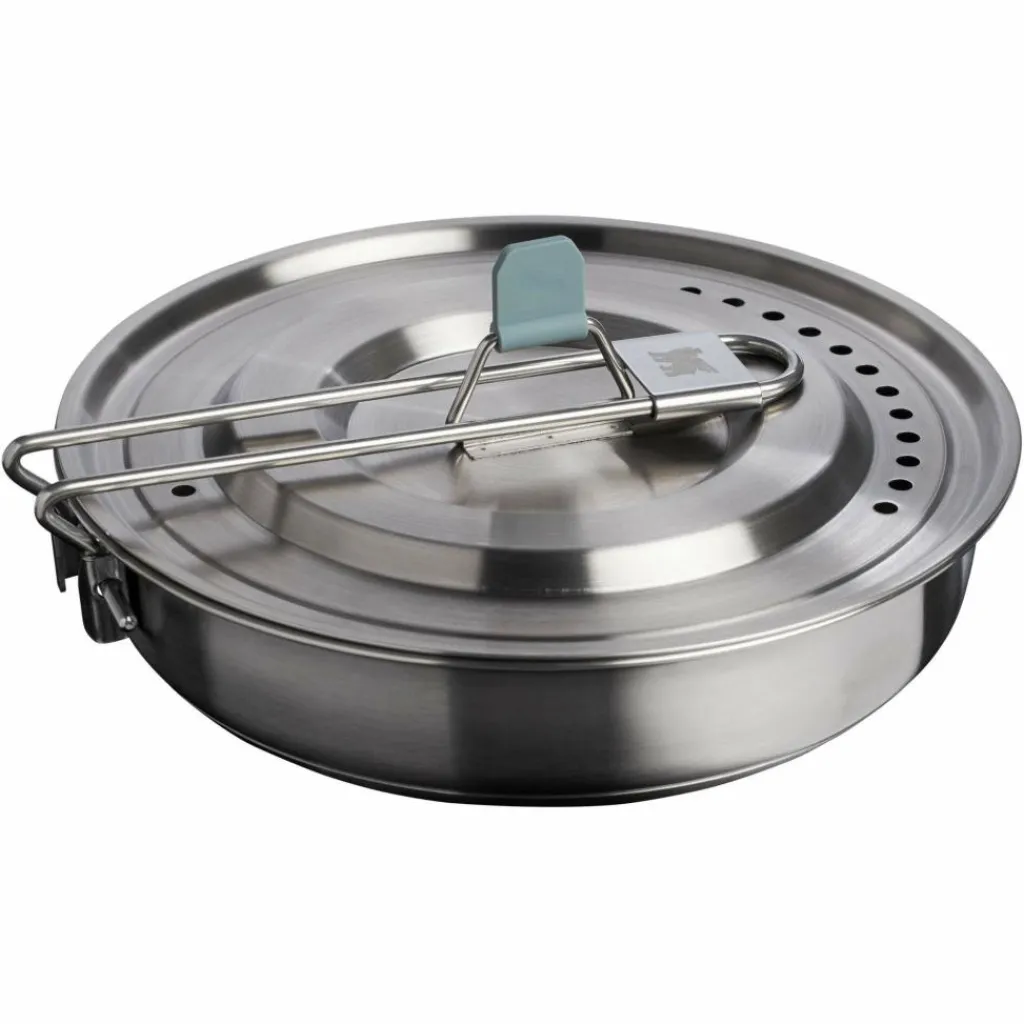 Das Wildfare Core Fry Pan Cookset ist ein 12-teiliges Set für die Zubereitung köstlicher Gerichte unterwegs. Es lässt sich ineinander stapeln und somit platzsparend transportieren.