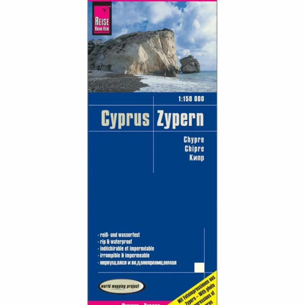 Hochreißfeste und 100% wasserfeste Landkarte „Zypern“ aus der Serie world mapping project, erschienen im Reise Know-How Verlag.Reise Know-How Landkarten zeichnen sich durch besonders stabiles Kunststoffpapier aus, das beschreibbar ist wie Papier, sogar mit Bleistift. Der Pappumschlag ist abnehmbar, so dass sich die Karte bequem in jede Tasche stecken lässt. Eine Schutzhülle ist nicht erforderlich. Die kartografische Darstellung konzentriert sich auf die wichtigsten Informationen für Reisende und ist besonders gut lesbar. Statt einer Schummerung werden farbige Höhenschichten verwendet.Ausstattung: – Höhenlinien mit Höhenangaben; – Farbige Höhenschichten; – Klassifiziertes Straßennetz mit Entfernungsangaben; – Sehenswürdigkeiten; – Ausführlicher Ortsindex; – GPS-genau; – Längen- und Breitengrade; – UTM-Gitter; – Türkische und griechische Ortsnamen in Nordzypern; – Griechische Schrift im Südteil; – Übersichtskarte; – Fünfsprachige Legende (deutsch, englisch, französisch, spanisch, russisch). Handliches Format: 70×100 cm, 2-seitig bedruckt.