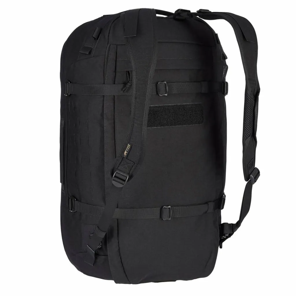 Das Hauptfach besitzt eine U-förmige Öffnung, sodass sich der Deckel komplett zur Seite klappen lässt und die Tasche leicht zu befüllen ist. Die Bungee-Kordeln im Innern halten alles an Ort und Stelle, auch wenn die Duffle nicht voll befüllt ist. In den Netzfächern im Deckel und an den Seiten ist Platz für Kleinteile wie Elektronik. Du brauchst mehr Stauraum? Die Klettfläche und Lasercut MOLLE-Laschen außen bieten Platz für modulare Erweiterungen (siehe Zubehör).