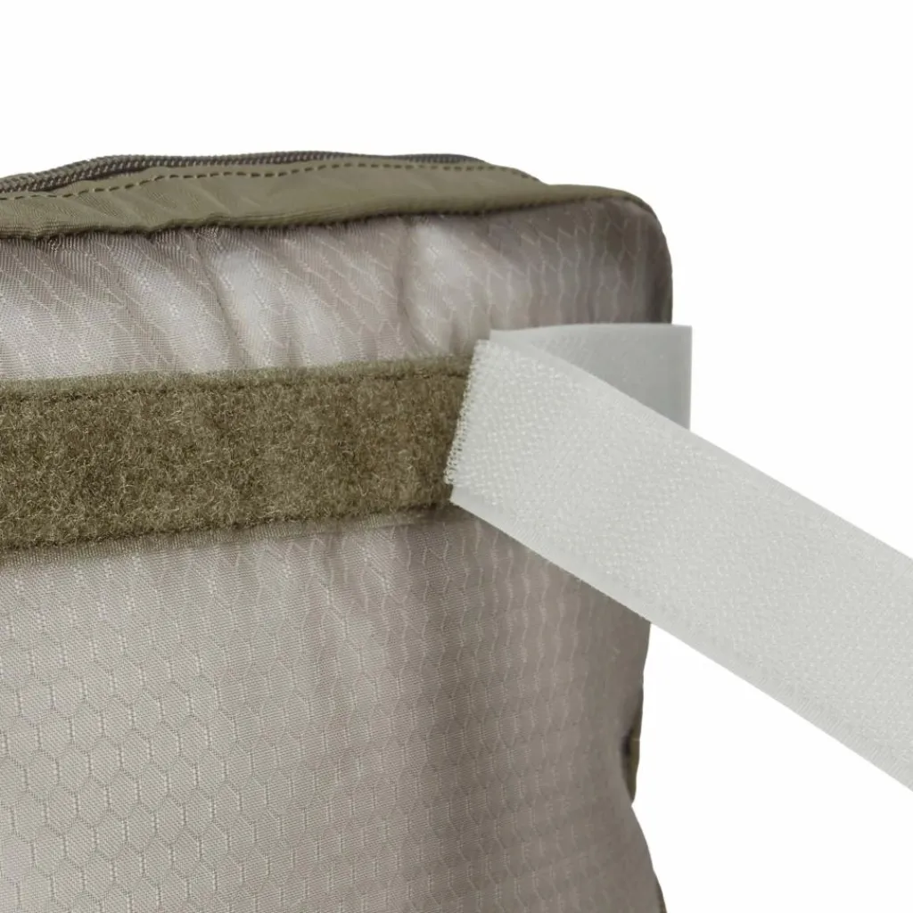 Auf der Rückseite befinden sich Klettflächen und zwei Schlaufen, mit denen du die Packbeutel in oder an Rucksäcken mit Schlaufen oder MOLLE-System befestigen kannst. Beide Taschen haben außerdem einen „Blind-Klett“ auf der Vorderseite.
