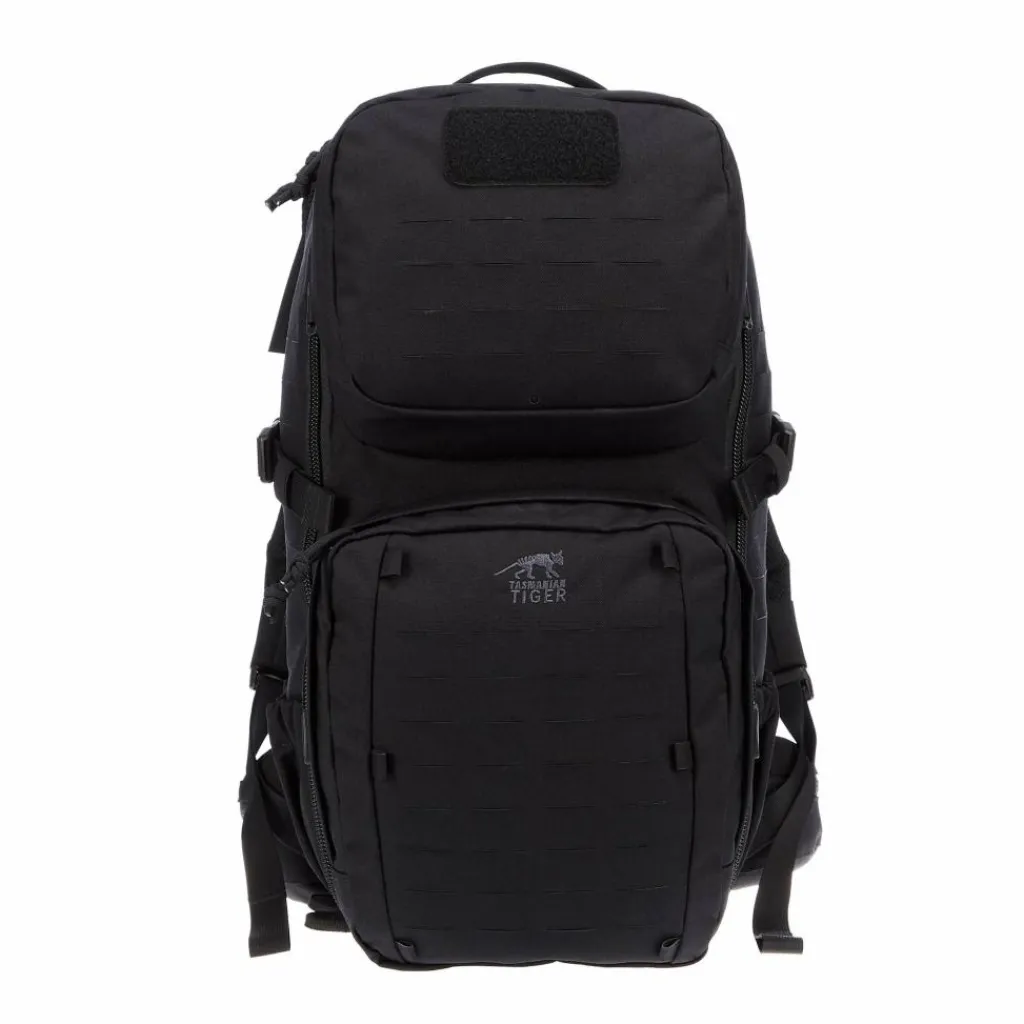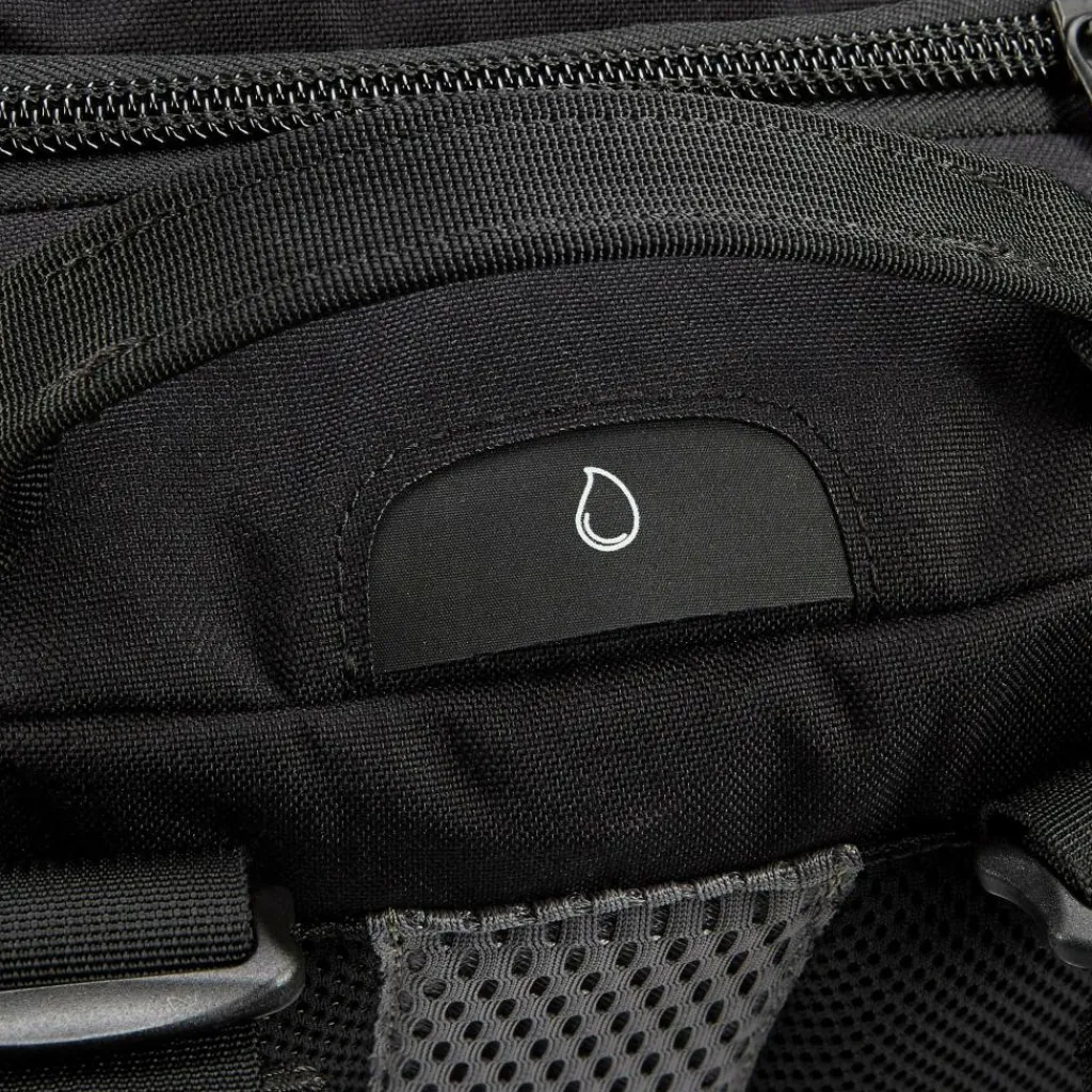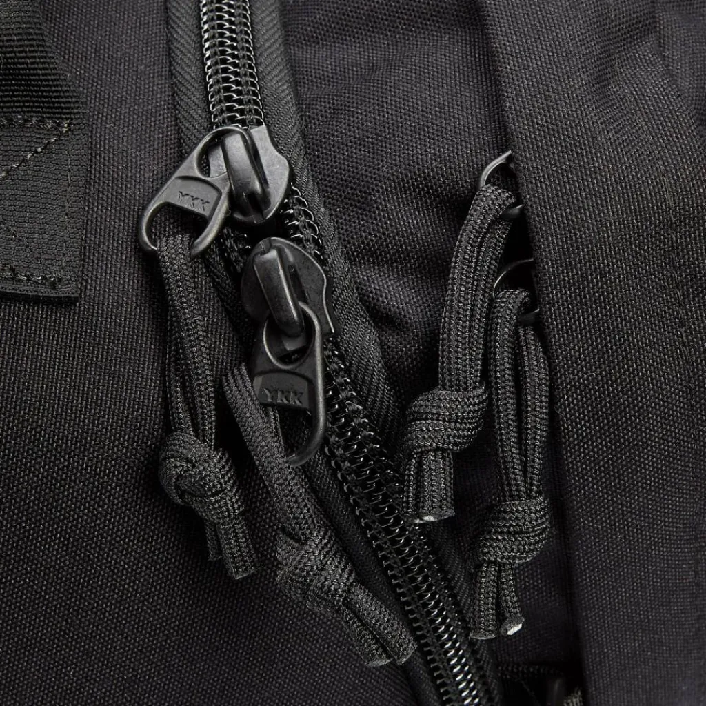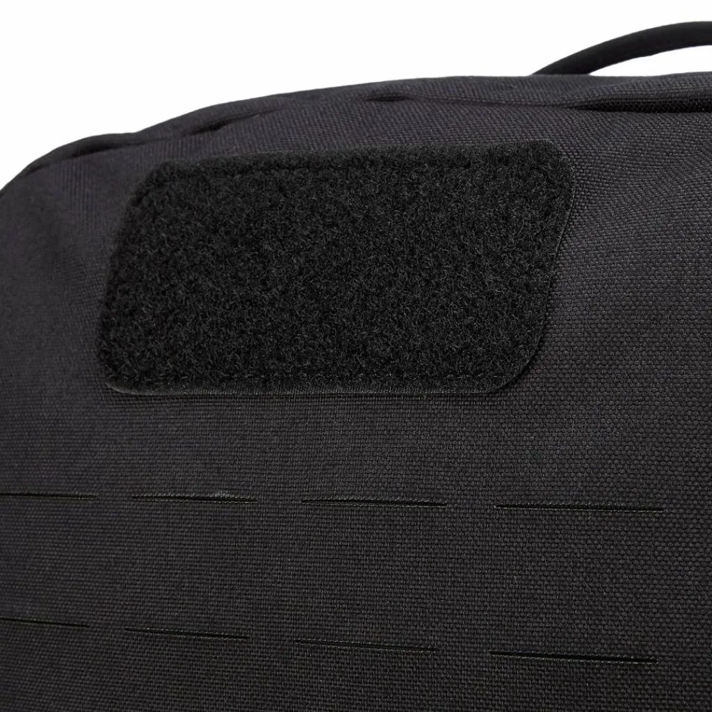 Hinzu kommen verschieden große Befestingsösen auf der Außenseite sowie zwei aufgesetzte Fächer. Der Rucksack kann dadurch mit anderen Gepäckstücken kombiniert und mit dem passenden MOLLE-Zubehör individualisiert werden.