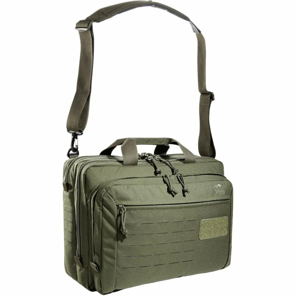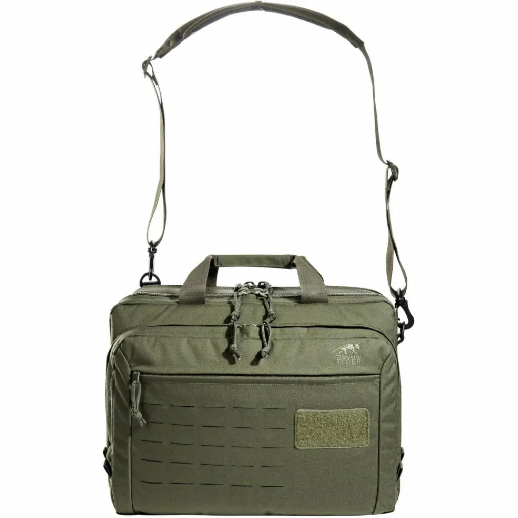 In gewohnter Tasmanian Tiger Manier ist auch die TT Document Bag MKII mit MOLLE-System ausgestattet. Auf der Front und an den Seiten befinden sich MOLLE-Lasercut-Laschen. Des Weiteren gibt es Klettflächen im hinteren RV-Fach sowie auf der Front.