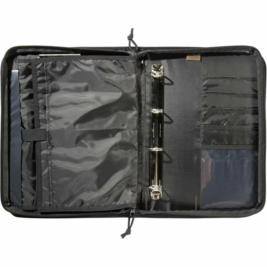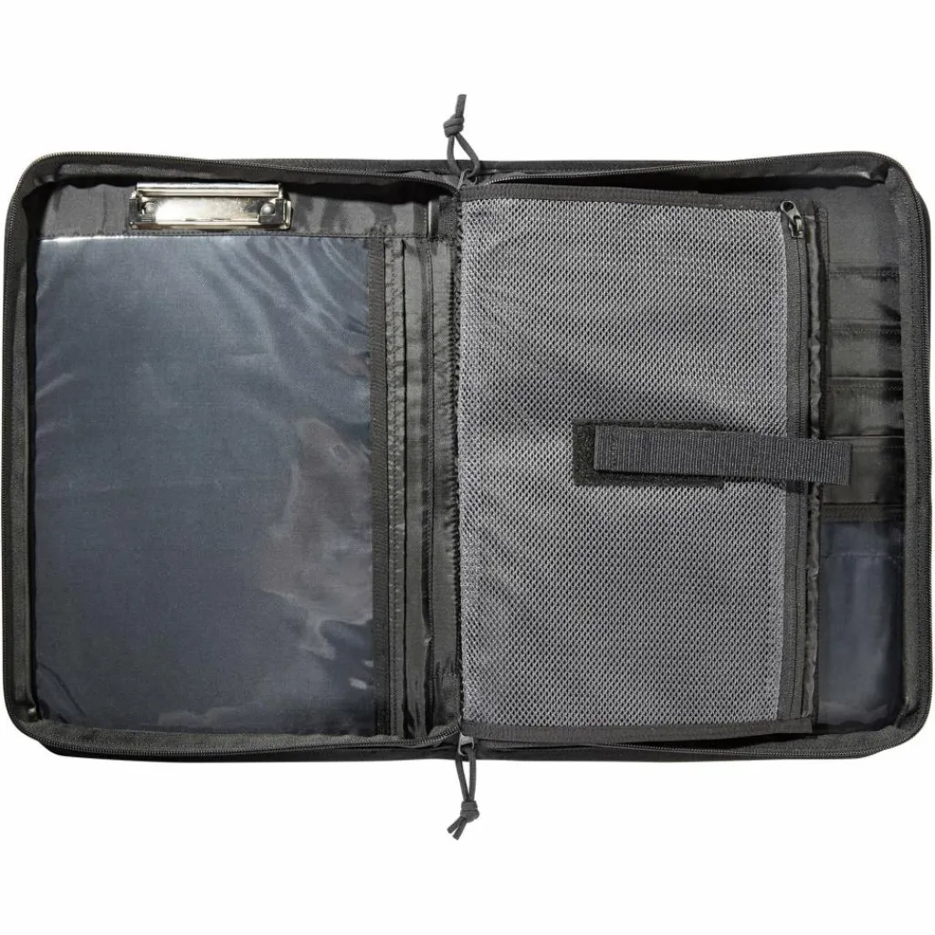 Die TT File Server A4 MKII ist eine aufklappbare Dokumententasche, in der Dokumente bis DIN A4, Stifte und Geldkarten Platz finden. Links befindet sich eine Klemmmappe, rechts eine 4-fach Ringbindung. Daneben gibt es im Innern Fächer in verschiedenen Größen, beispielsweise für Münzen, Stifte, Karten, Ausweis, und ein herausnehmbares Organizerfach. Zwei flache RV-Fächer außen bieten weiteren Stauraum. Ebenfalls außen befindet sich eine Klettfläche zum Anbringen von Patches oder Namensschildern. Mithilfe des D-Rings oder der Ausrüstungsschlaufen kann der Dokumentenbeutel in Taschen oder Rucksäcken befestigt werden.