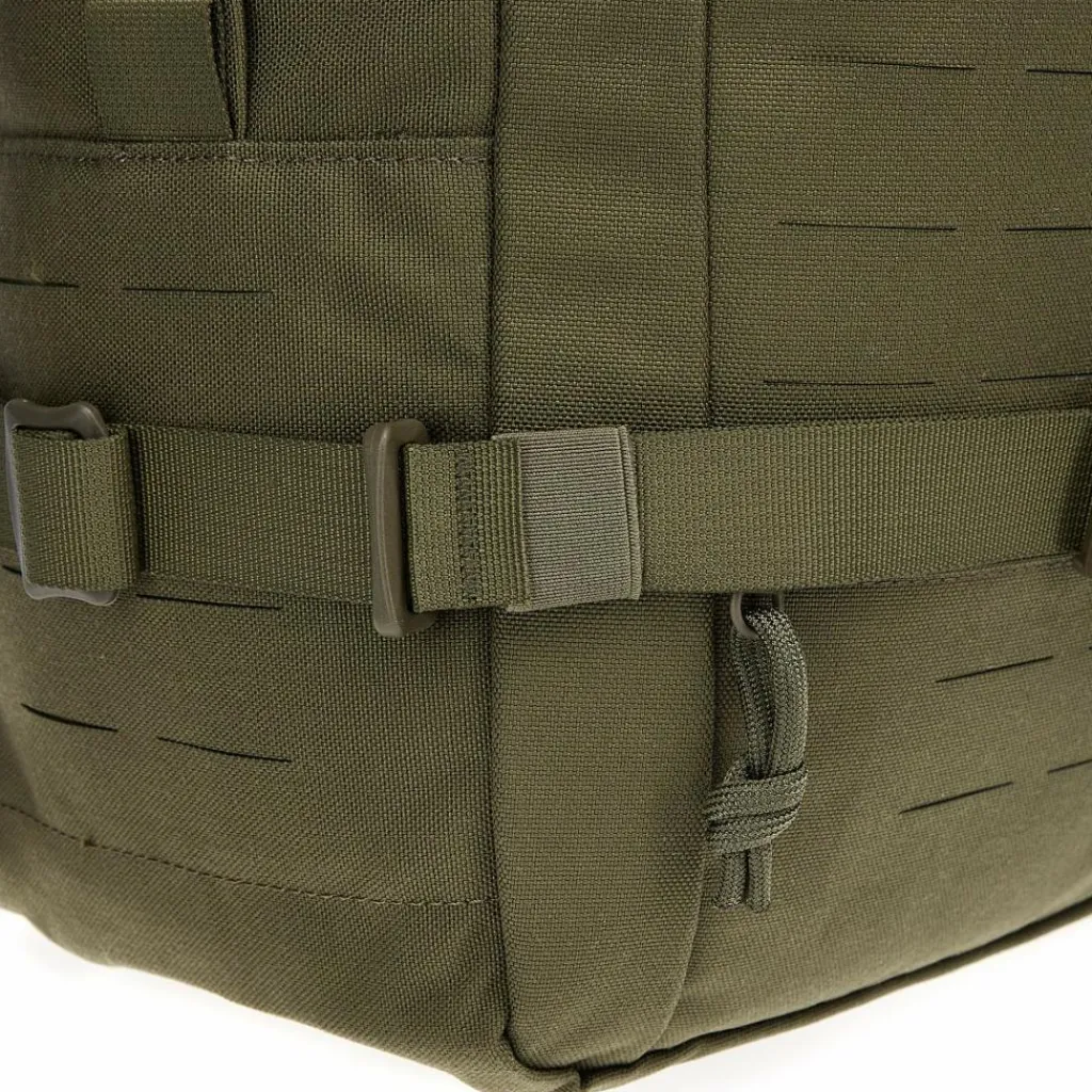 Die lasergeschnitten MOLLE-Laschen auf der Außenseite fügen sich unauffällig in den Stoff des Rucksacks ein. Mittels diverser, separat erhältlicher MOLLE-Taschen kannst du den Rucksack im Volumen erweitern und nach deinen Vorlieben gestalten. Die MOLLE-Klettlaschen im Hauptfach ermöglichen dir zudem das Anbringen verschiedener Innentaschen.