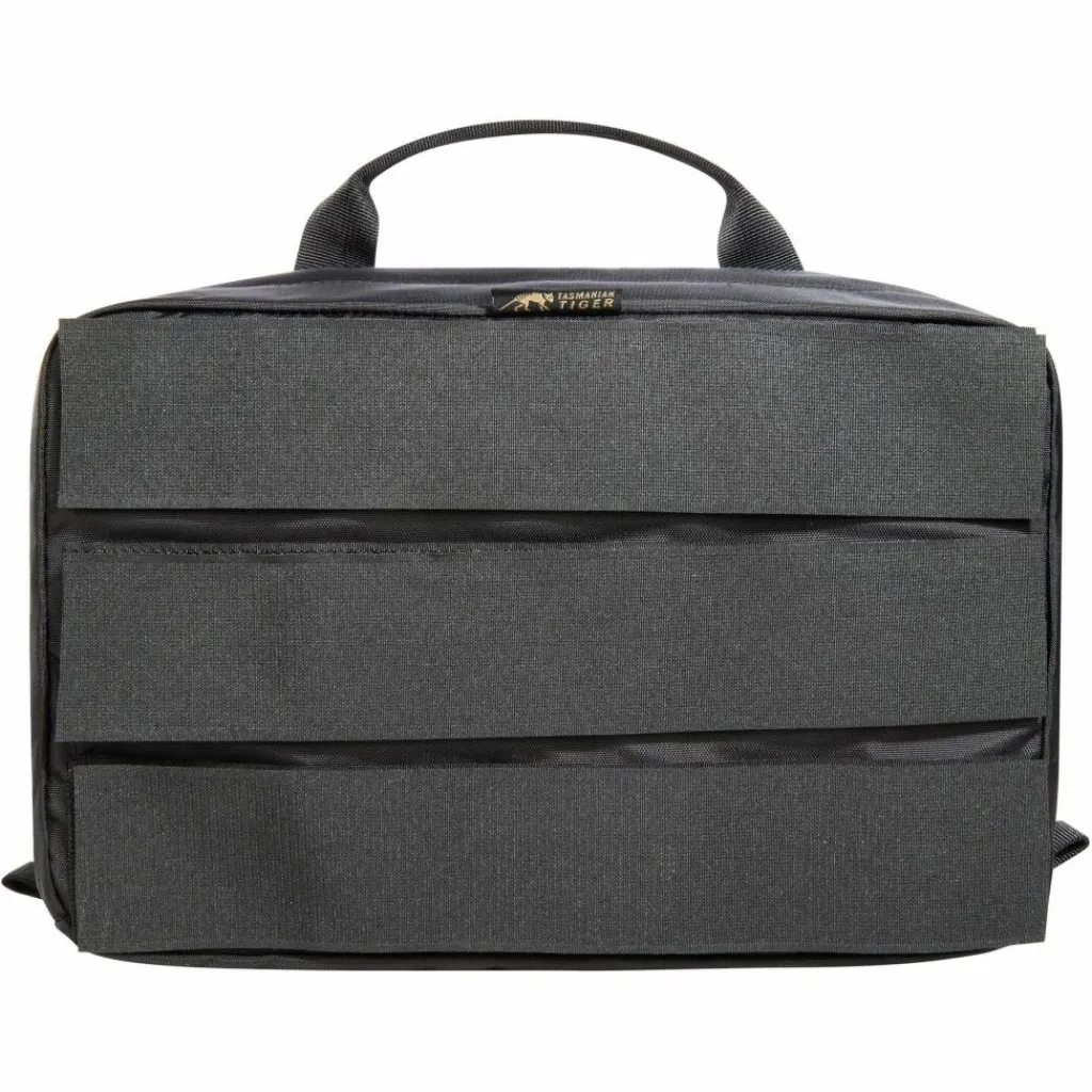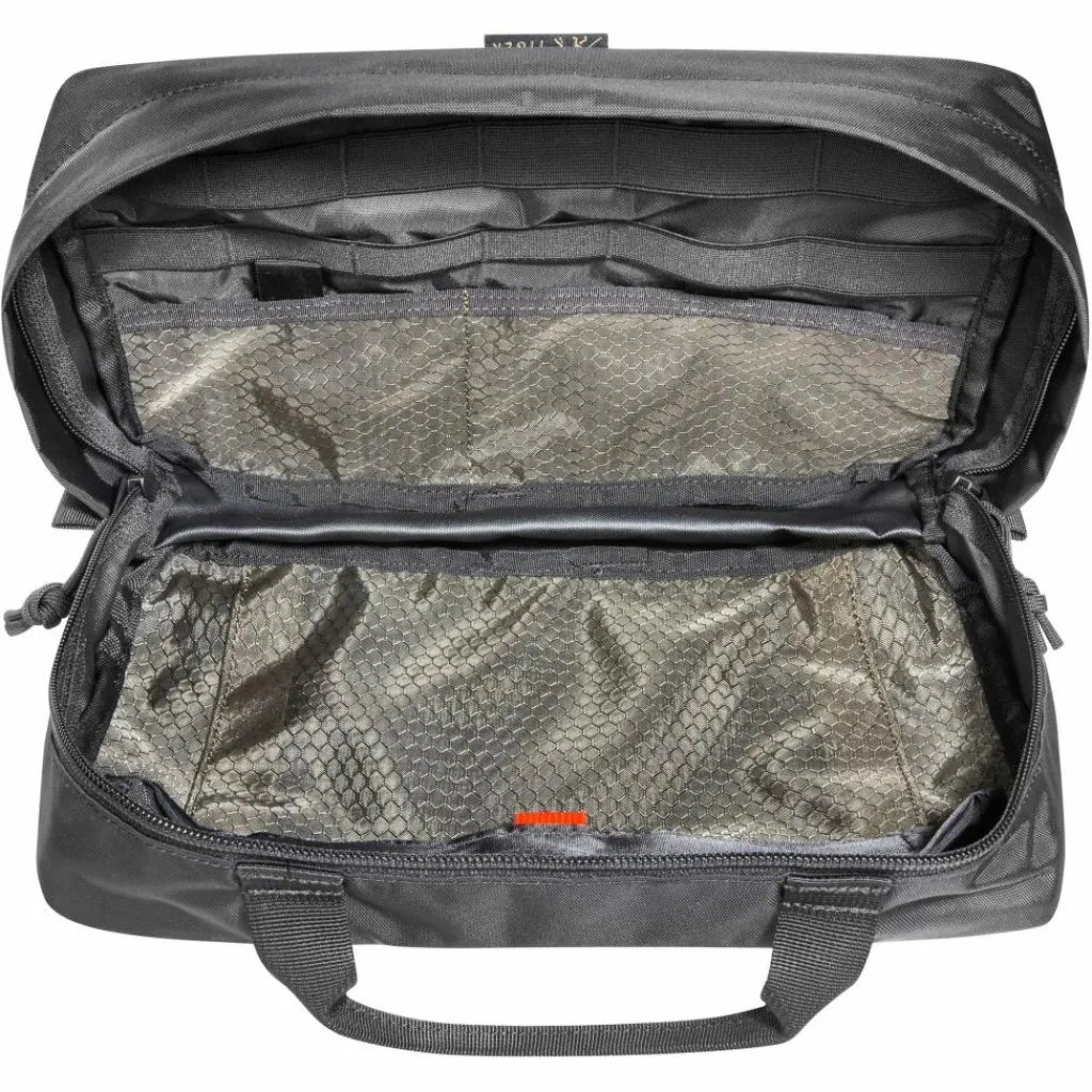 Die TT Multipurpose Pouch VL kann mithilfe der großen, abdeckbaren Klettflächen auf der Außenseite in modularen Rucksäcken befestigt werden. Sie ist mit Netz-Innenfächern, Schlaufen und einem Organizer versehen.
