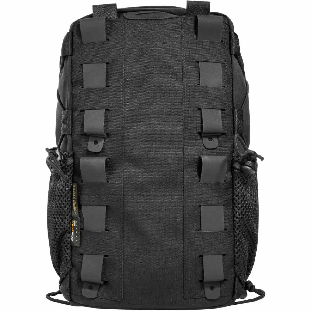 Die TT Tac Pouch 11 mit 5 Liter Volumen bietet durch den Mittelreißverschluss einen schnellen Zugriff. Die funktionale Innenaufteilung des Hauptfachs mit MOLLE-Klett und Bungee-Cord kann zum Beispiel für medizinische Ausrüstung genutzt werden. Die Tasche verfügt zudem über seitliche Einstecktaschen aus Netzgewebe, z.B. für Magazine, und MOLLE in Lasercut-Ausführung sowie eine Flauschklettfläche auf der Front. Das gesamte System ist mit Bungee-Cord flach komprimierbar. Die Tasche ist zudem mit einer Trinksystemvorbereitung und dem entsprechenden Ausgang ausgestattet.