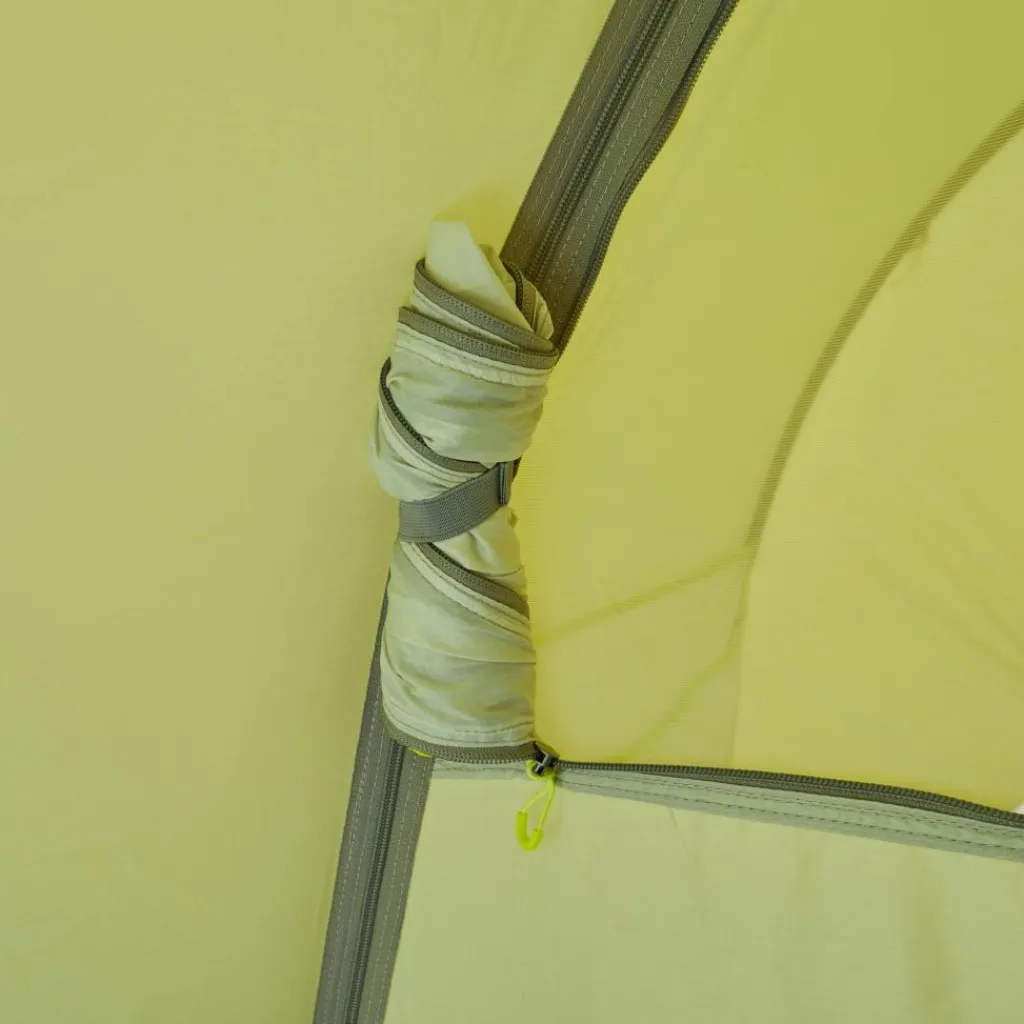 Im Arctis lässt es sich sehr bequem liegen. Nicht nur die Liegelänge, sondern besonders die Breite ist mit 140 cm für zwei Personen komfortabel geschnitten. Das erleichtert dir das Umziehen und den Aufenthalt im Zelt. Mehrere Seitentaschen verstauen Kleinigkeiten, wie Bücher, Smartphone oder Taschenlampe. Auf der integrierten Wäscheleine im Innenzelt kannst du deine Wäsche zum Trocknen aufhängen. Weitere Schlaufen ermöglichen dir auch mehrere Leinen zu spannen oder eine Zeltlaterne aufzuhängen.