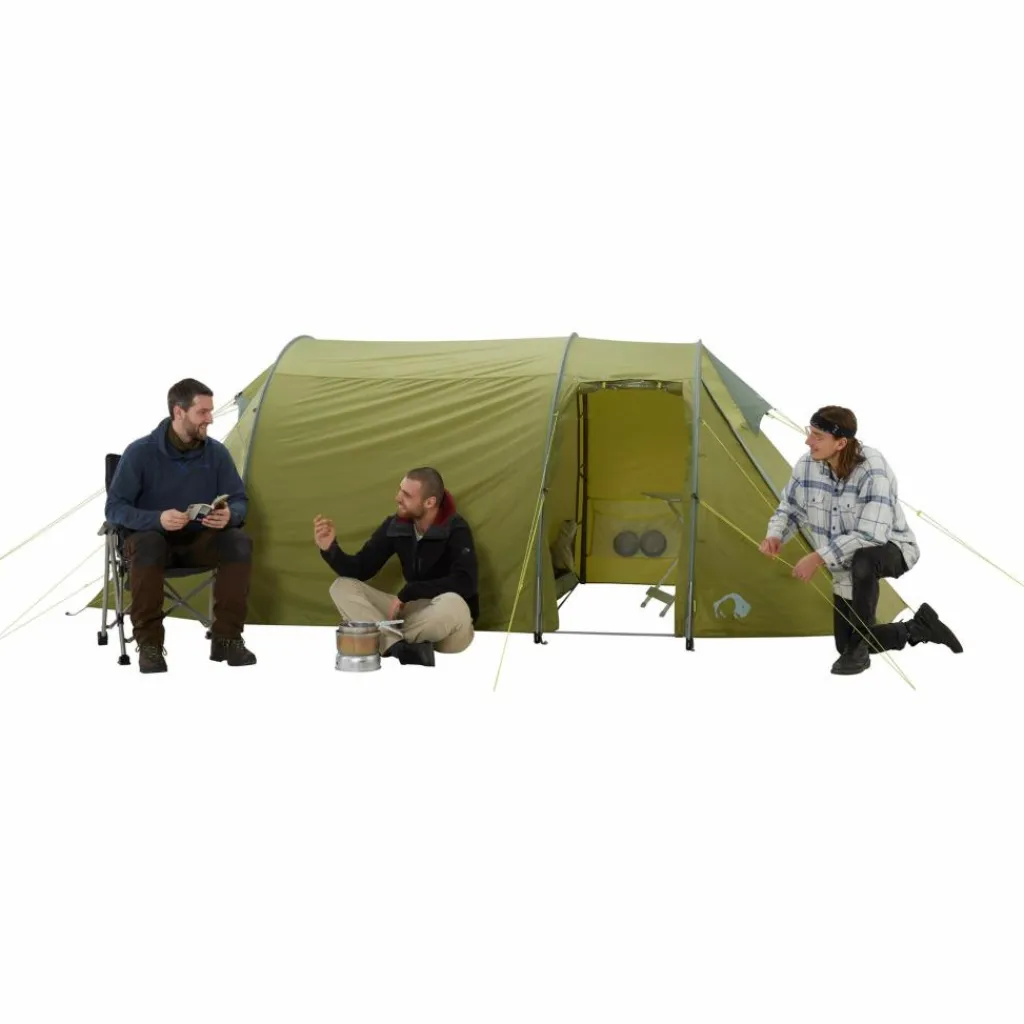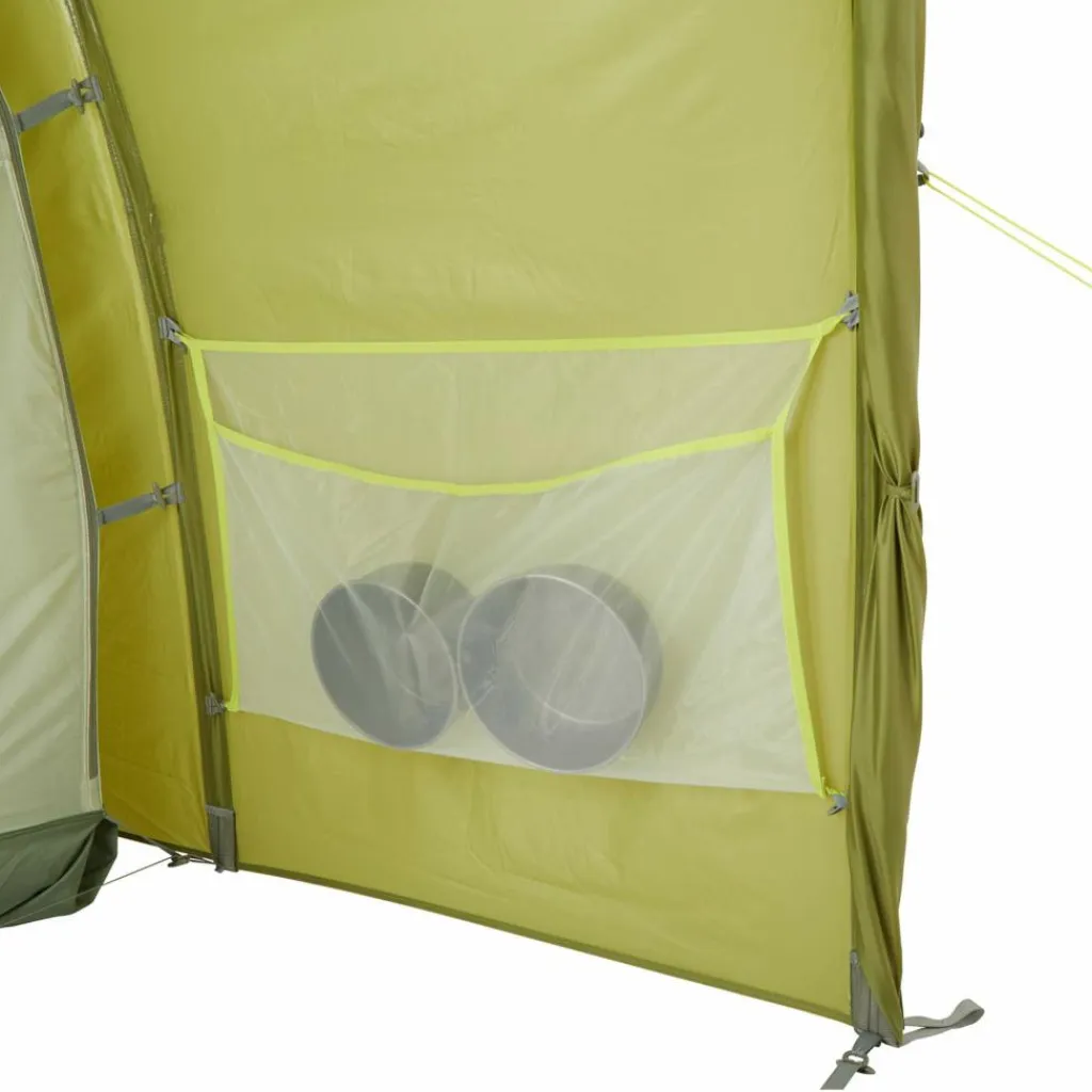 Der Name ist Programm: mit 150 cm Außenzelthöhe in der Apsis bietet das Deluxe fast schon Stehhöhe und erleichtert den Einstieg. Im Inneren viel Bewegungsfreiheit und Sitzhöhe: Bei schlechtem Wetter hat man so etwas mehr Spielraum. 3 Eingänge stehen dir zur Verfügung. Zwei davon führen in die Apsis und ein weiterer direkt aus der Kabine nach hinten heraus. Der seitliche Eingang ist zudem mit Moskito-Gaze verschließbar und besitzt ein abdeckbares Fenster.