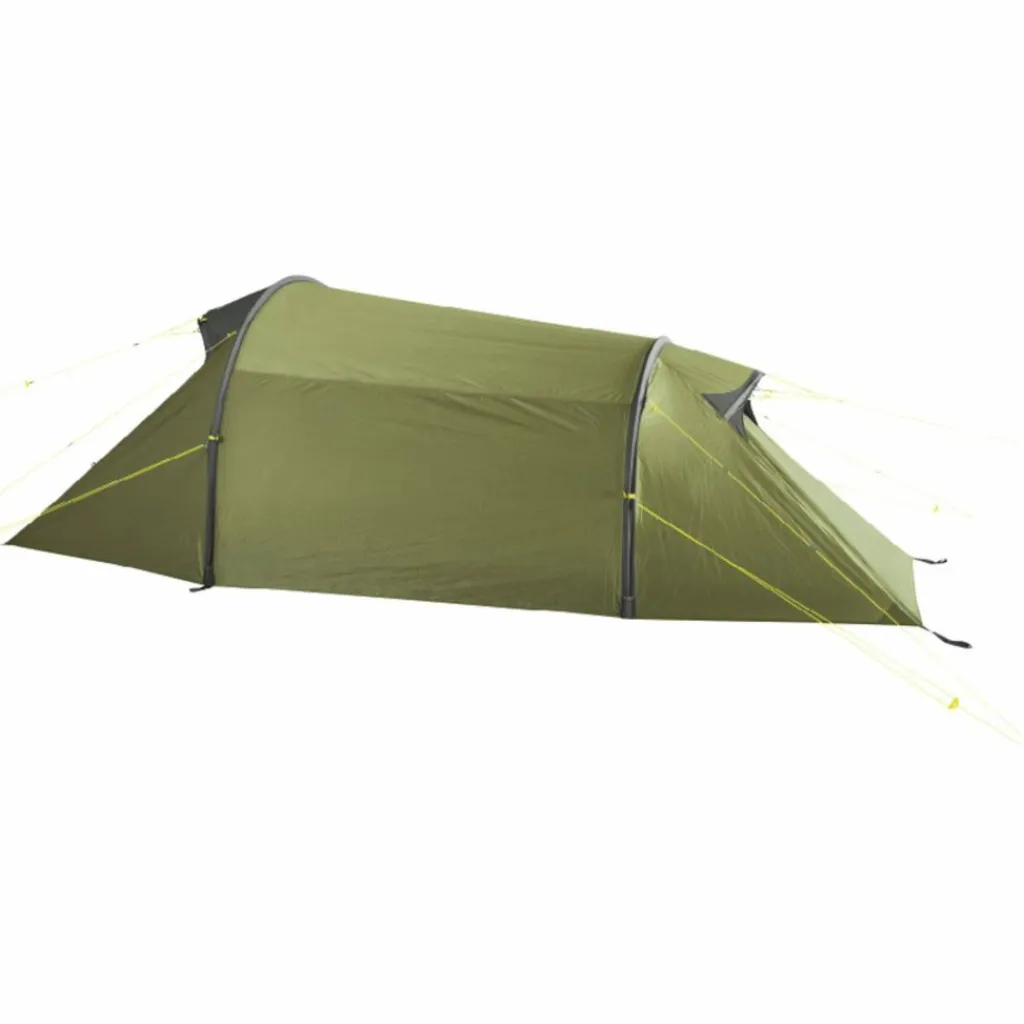 Da Innen- und Außenzelt miteinander gekoppelt sind, werden sie ganz einfach gemeinsam aufgebaut. Soll das Innenzelt bei Regen trocken verstaut werden, lässt es auch aushängen. Die Tunnelkonstruktion ist, mit der Schmalseite zum Windrichtung ausgerichtet, sehr windstabil.
