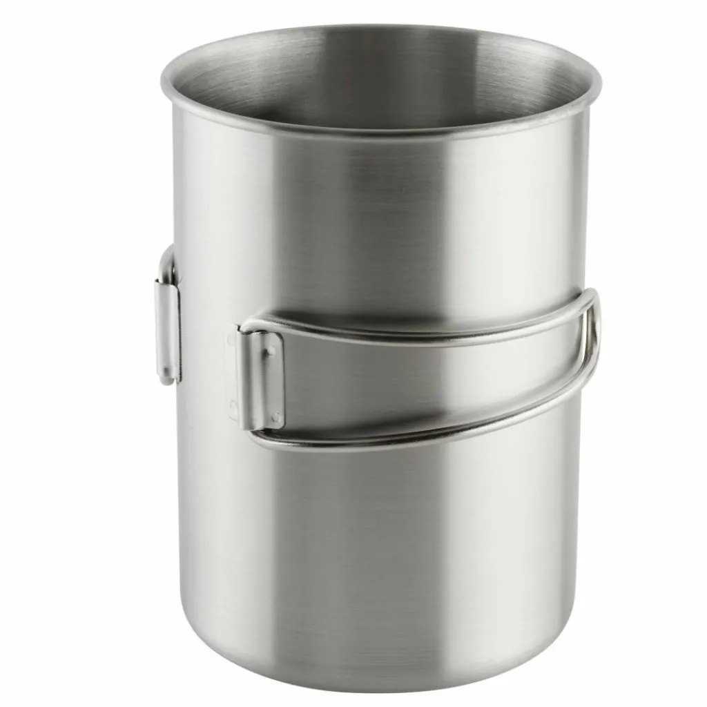 Großer Becher mit 850 ml Volumen, den du dank der robusten Ausführung auch als Topf verwenden kannst. Die klappbaren Handgriffe reduzieren das Packmaß auf ein Minimum.
