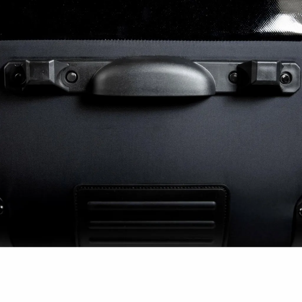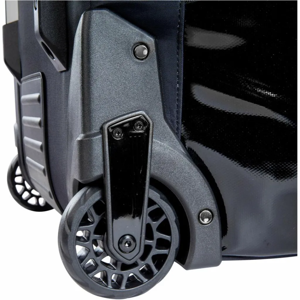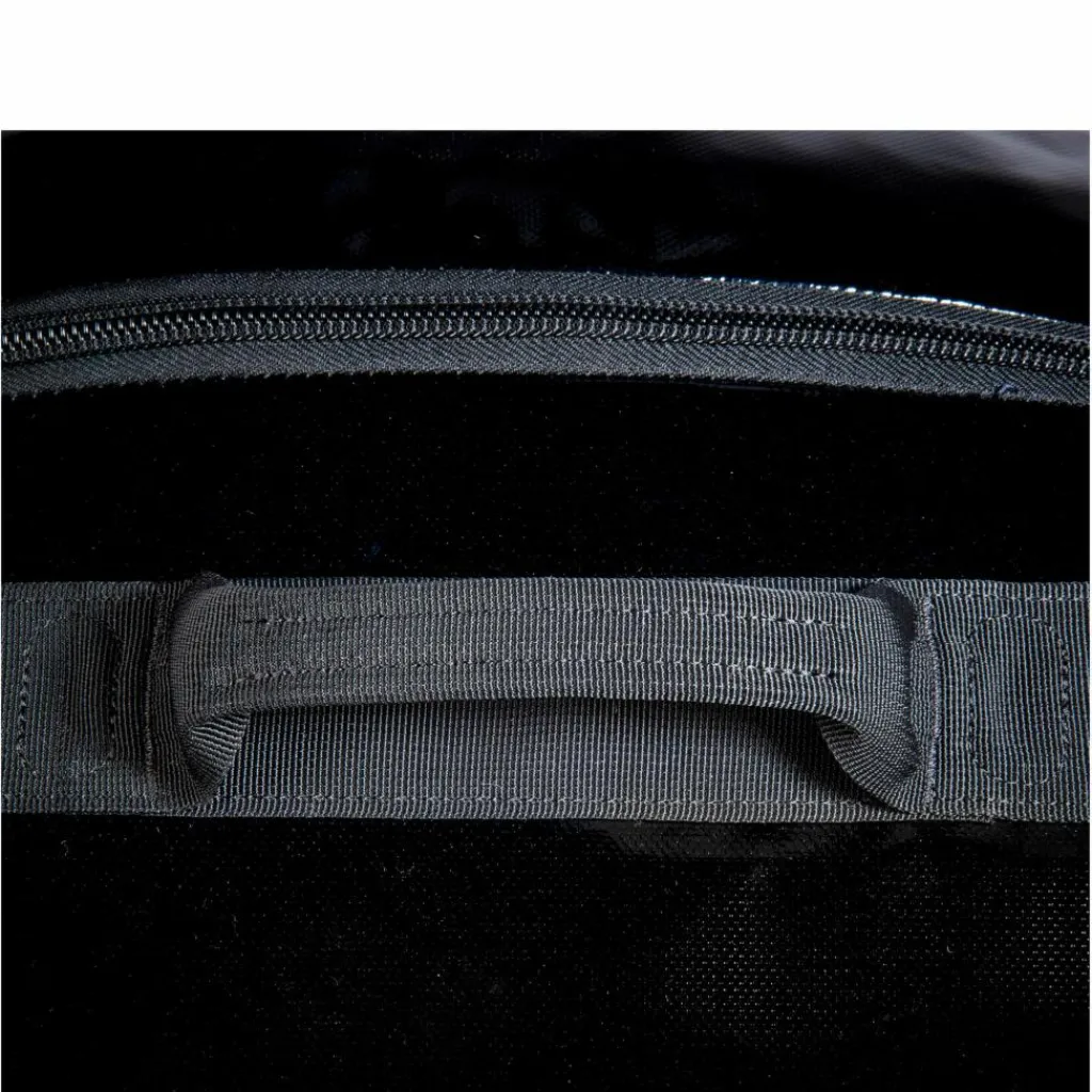 Der Boden der Tasche ist durch zwei Schienen versteift. Dadurch hängt der Reisetrolley auch voll beladen nicht durch und lässt sich mit dem stabilen Handgriff problemlos ziehen. Die beiden PU-Rollen lassen den Flight Roller dabei leise über den Boden gleiten.